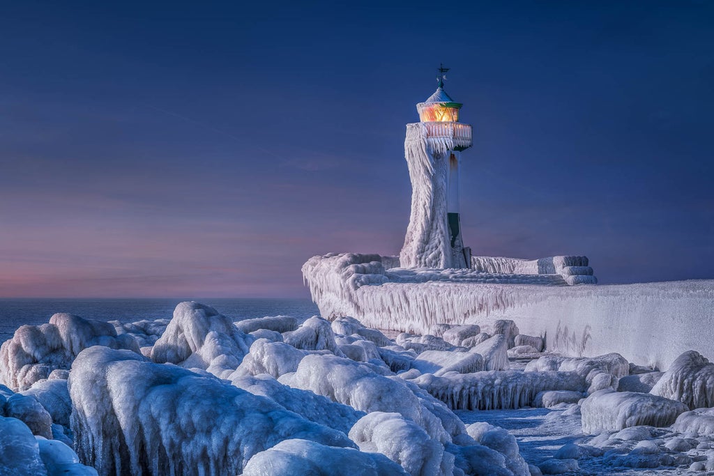 One winner was selected from the 606,000 entries – and it’s a haunting image of a frozen lighthouse on the German island of Rügen.