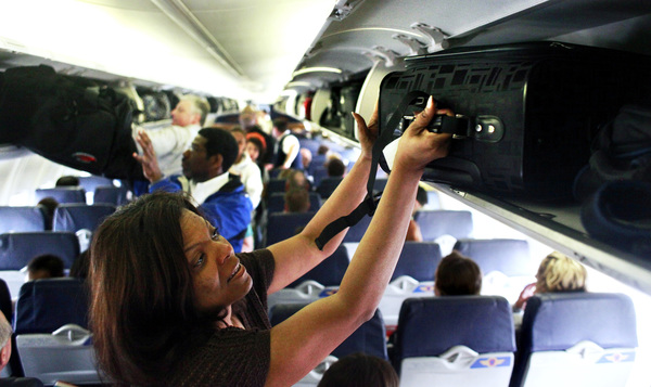 _ Use the overhead bins on United or American unless you have some sort of airline status. Delta doesn't have that overhead restriction.