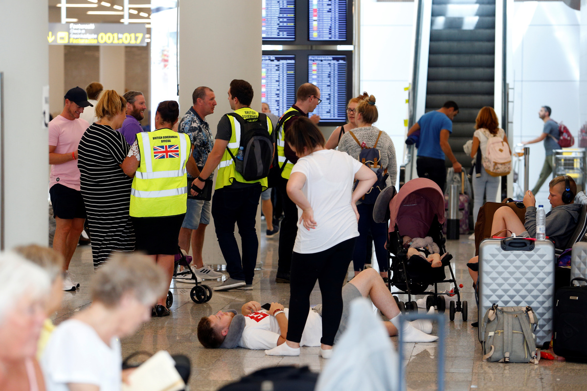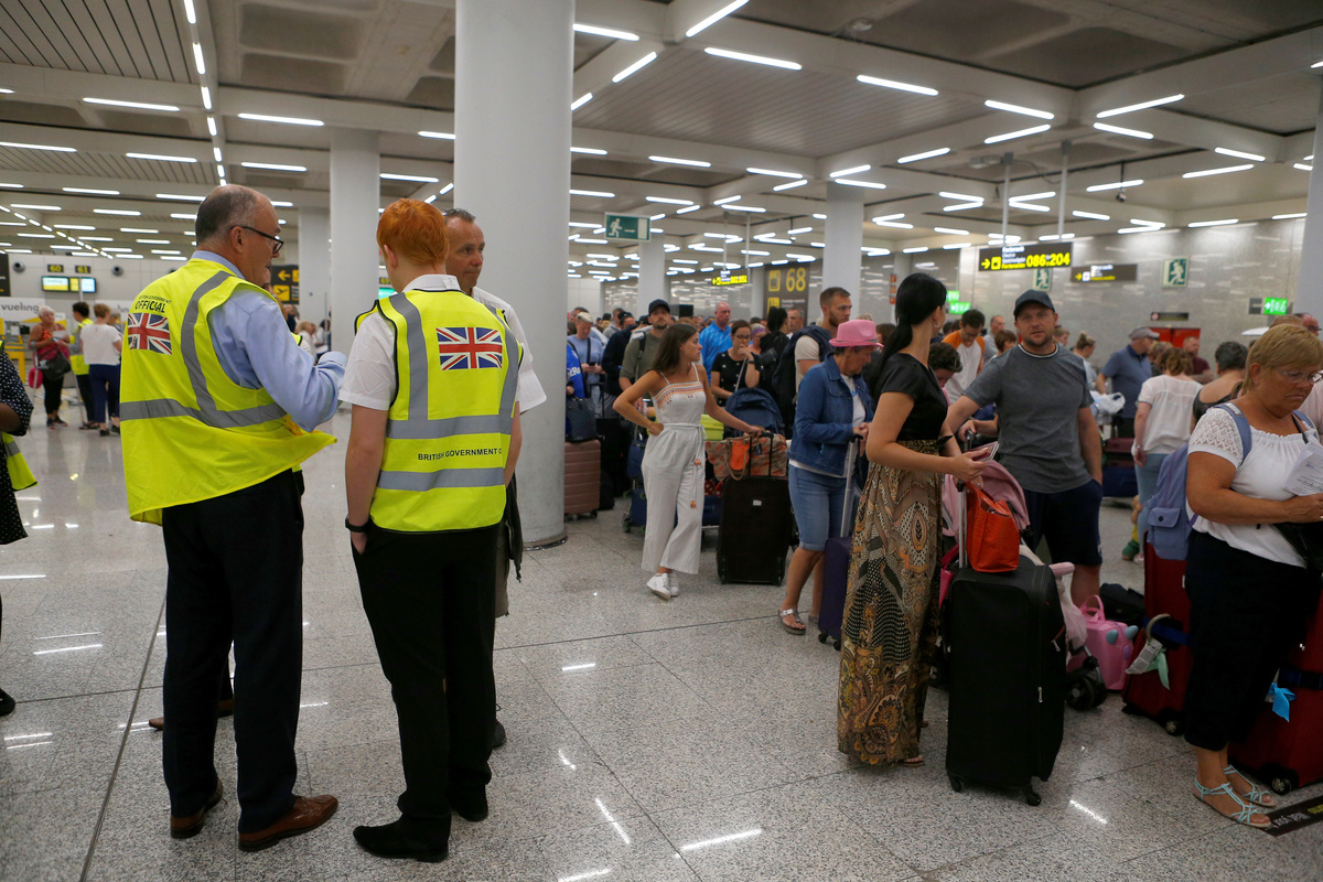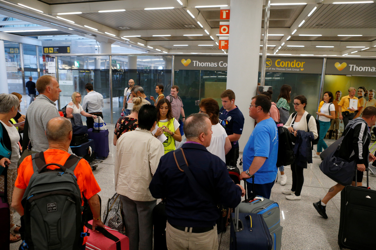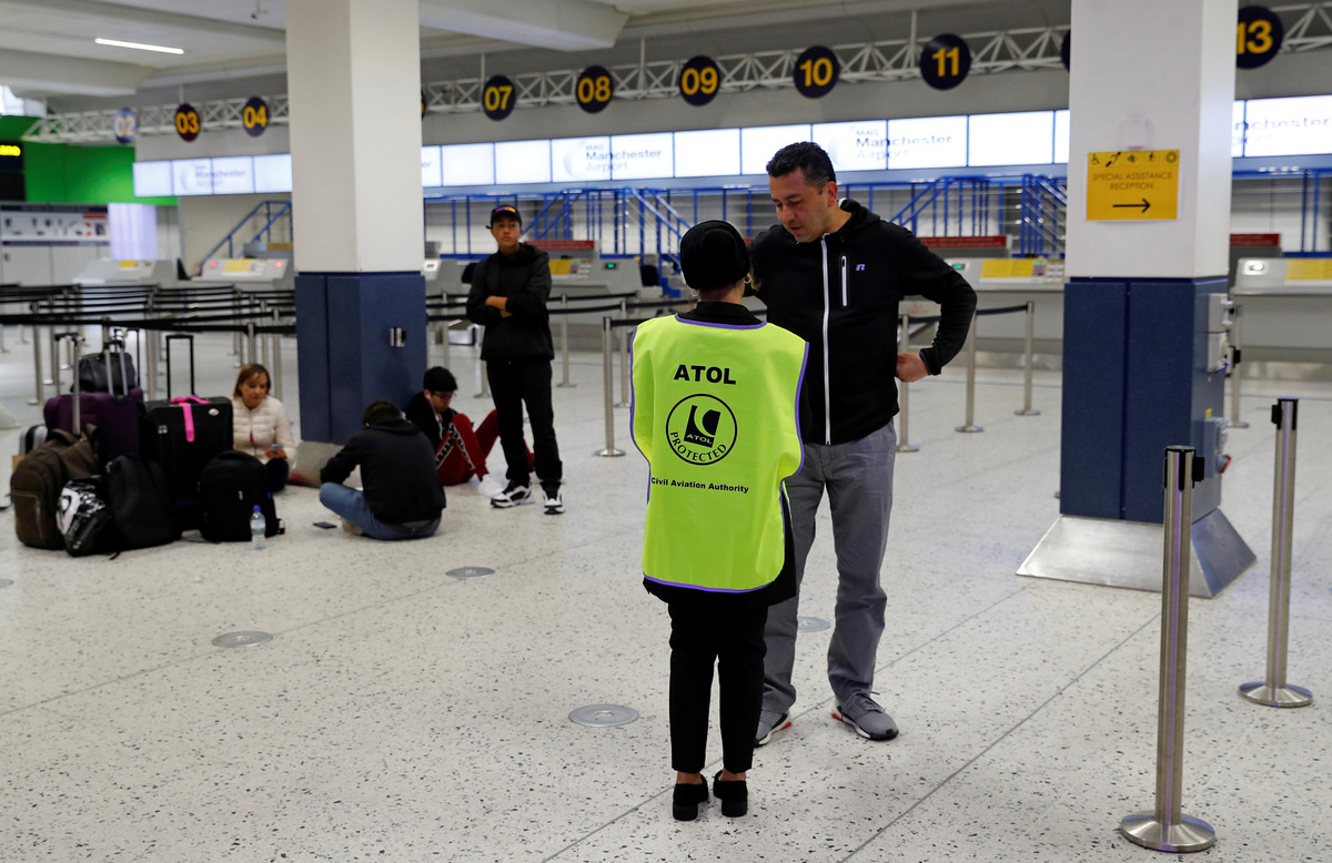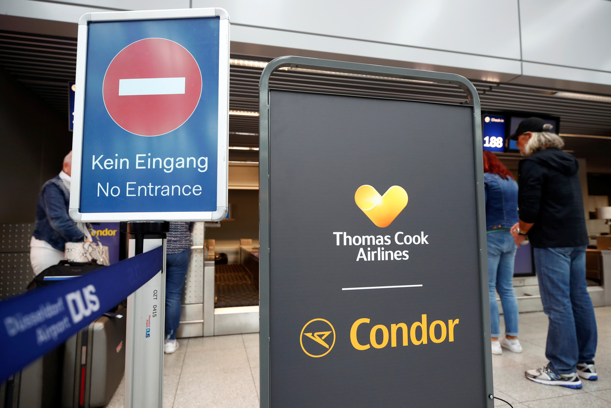 Cancelled flights are seen on screen at Manchester Airport, Manchester, Britain September 23, 2019. REUTERS/Phil NobleA man holds information on Thomas Cook flights at Manchester Airport, Manchester, Britain September 23, 2019. REUTERS/Phil NobleThe last Thomas Cook flight, coming from Orland, U.S., arrives in Manchester, Britain, September 23, 2019, in this still image from social media. Gareth J Bond via REUTERS Passengers are seen at Mallorca Airport after Thomas Cook, the world's oldest travel firm collapsed stranding hundreds of thousands of holidaymakers around the globe and sparking the largest peacetime repatriation effort in British history, in Palma de Mallorca, Spain, September 23, 2019. REUTERS/Enrique CalvoA closed Thomas Cook check-in service is pictured at the Frankfurt Airport, Germany September 23, 2019. REUTERS/Kai PfaffenbachA British Government official assists passengers at Manchester Airport, Manchester, Britain September 23, 2019. REUTERS/Phil NobleAn ATOL official assists passengers at Manchester Airport, Manchester, Britain September 23, 2019. REUTERS/Phil NoblePassengers are seen at Thomas Cook check-in points at Mallorca Airport after the world's oldest travel firm collapsed stranding hundreds of thousands of holidaymakers around the globe and sparking the largest peacetime repatriation effort in British history, in Palma de Mallorca, Spain, September 23, 2019. REUTERS/Enrique CalvoPassengers are seen at Thomas Cook check-in points at Mallorca Airport after the world's oldest travel firm collapsed stranding hundreds of thousands of holidaymakers around the globe and sparking the largest peacetime repatriation effort in British history, in Palma de Mallorca, Spain, September 23, 2019. REUTERS/Enrique CalvoPassengers are seen at Thomas Cook check-in points at Mallorca Airport after the world's oldest travel firm collapsed stranding hundreds of thousands of holidaymakers around the globe and sparking the largest peacetime repatriation effort in British history, in Palma de Mallorca, Spain, September 23, 2019. REUTERS/Enrique CalvoPassengers talk to British government officials at Thomas Cook check-in points at Mallorca Airport after the world's oldest travel firm collapsed stranding hundreds of thousands of holidaymakers around the globe and sparking the largest peacetime repatriation effort in British history, in Palma de Mallorca, Spain, September 23, 2019. REUTERS/Enrique CalvoBritish government officials are seen at Thomas Cook check-in points at Mallorca Airport after the world's oldest travel firm collapsed stranding hundreds of thousands of holidaymakers around the globe and sparking the largest peacetime repatriation effort in British history, in Palma de Mallorca, Spain, September 23, 2019. REUTERS/Enrique CalvoPassengers talk to British government officials at Thomas Cook check-in points at Mallorca Airport after the world's oldest travel firm collapsed stranding hundreds of thousands of holidaymakers around the globe and sparking the largest peacetime repatriation effort in British history, in Palma de Mallorca, Spain, September 23, 2019. REUTERS/Enrique CalvoThomas Cook banner is seen at Mallorca Airport after the world's oldest travel firm collapsed stranding hundreds of thousands of holidaymakers around the globe and sparking the largest peacetime repatriation effort in British history, in Palma de Mallorca, Spain, September 23, 2019. REUTERS/Enrique CalvoPassengers talk to Civil Aviation Authority employees at Mallorca Airport as an announcement is expected on the Thomas Cook's attempts to secure 200 million pounds in extra funding to reach agreement over its recapitalisation and secure its future, in Palma de Mallorca, Spain, September 23, 2019. REUTERS/Enrique CalvoA grounded airplane with the Thomas Cook livery is seen at Manchester Airport, Manchester, Britain September 23, 2019. REUTERS/Phil NoblePassengers are seen at Thomas Cook check-in points at Mallorca Airport as an announcement is expected on the tour operator's attempts to secure 200 million pounds in extra funding to reach agreement over its recapitalisation and secure its future, in Palma de Mallorca, Spain, September 23, 2019. REUTERS/Enrique CalvoPassengers are seen at Thomas Cook check-in points at Mallorca Airport as an announcement is expected on the tour operator's attempts to secure 200 million pounds in extra funding to reach agreement over its recapitalisation and secure its future, Palma de Mallorca, Spain, September 23, 2019. REUTERS/Enrique CalvoPassengers are seen at Thomas Cook check in points at Mallorca Airport as an announcement is expected on the tour operator's attempts to secure 200 million pounds in extra funding to reach agreement over its recapitalisation and secure its future, in Palma de Mallorca, Spain, September 23, 2019. REUTERS/Enrique CalvoPassengers talk to Civil Aviation Authority employees at Mallorca Airport as an announcement is expected on the Thomas Cook's attempts to secure 200 million pounds in extra funding to reach agreement over its recapitalisation and secure its future, in Palma de Mallorca, Spain, September 23, 2019. REUTERS/Enrique CalvoPassengers talk to Civil Aviation Authority employees at Mallorca Airport as an announcement is expected on the Thomas Cook's attempts to secure 200 million pounds in extra funding to reach agreement over its recapitalisation and secure its future, in Palma de Mallorca, Spain, September 23, 2019. REUTERS/Enrique CalvoGrounded airplanes with the Thomas Cook livery are seen at Manchester Airport, Manchester, Britain September 23, 2019. REUTERS/Phil NobleFlight information boards are seen at Mallorca Airport as an announcement is expected on the Thomas Cook's attempts to secure 200 million pounds in extra funding to reach agreement over its recapitalisation and secure its future, in Palma de Mallorca, Spain, September 23, 2019. REUTERS/Enrique CalvoFILE PHOTO: The Thomas Cook logo is seen in this illustration 