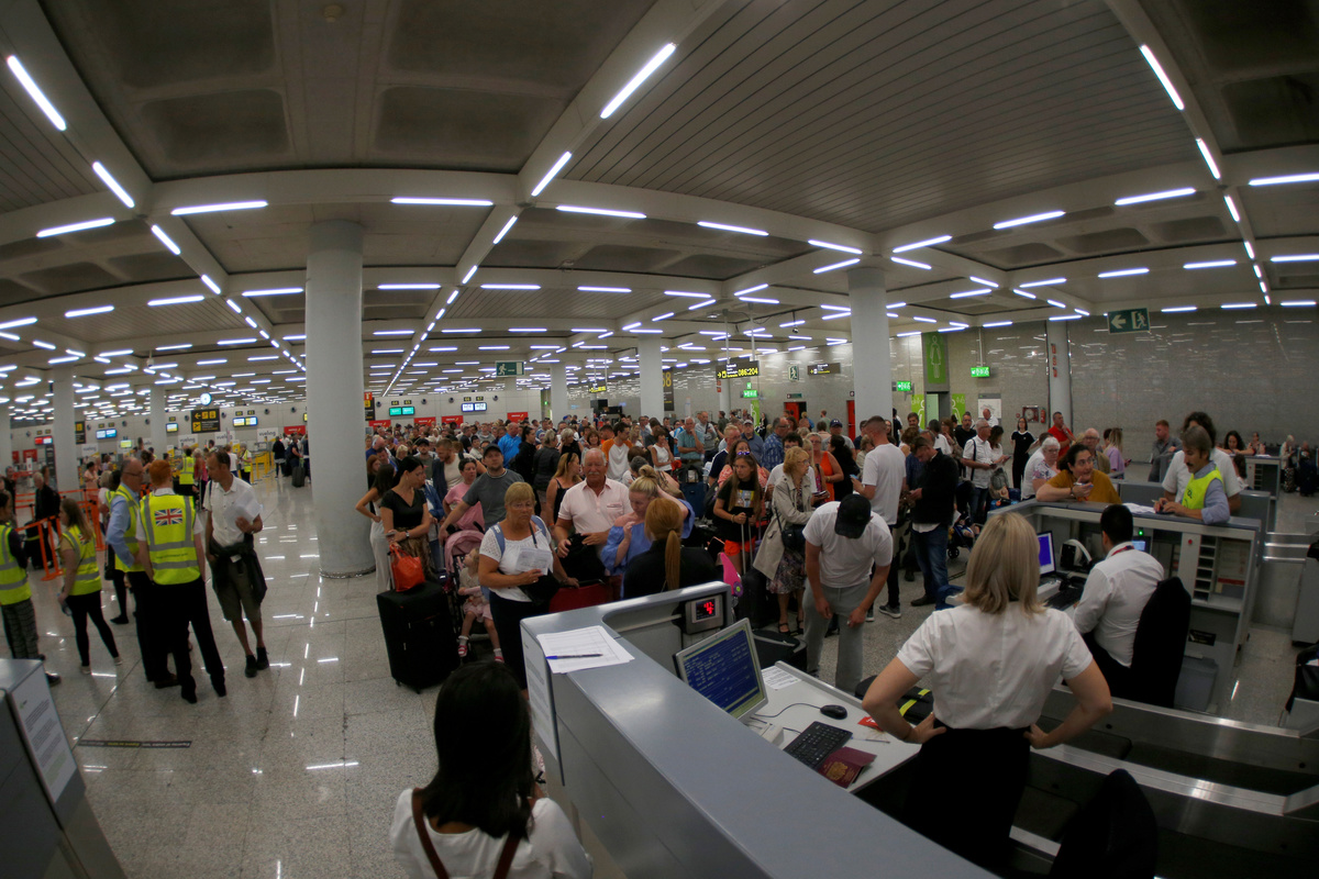 Passengers are seen at Mallorca Airport after Thomas Cook, the world's oldest travel firm collapsed stranding hundreds of thousands of holidaymakers around the globe and sparking the largest peacetime repatriation effort in British history, in Palma de Mallorca, Spain, September 23, 2019. REUTERS/Enrique Calvo