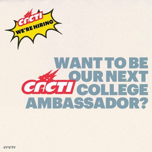 “Ambassadors will receive experience in both marketing and leadership, ongoing coaching and professional development, networking and the opportunity to join,” Cacti’s statement adds, leaving out the hype that will surely accompany the position.