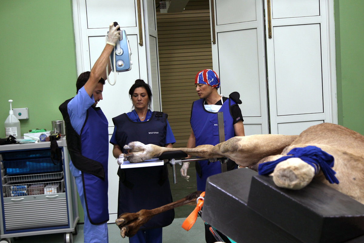 Its customized equipment was adapted from equestrian medical equipment to accommodate camel treatment. A surgery starts at $1,000 and an X-ray or ultrasound at $110.