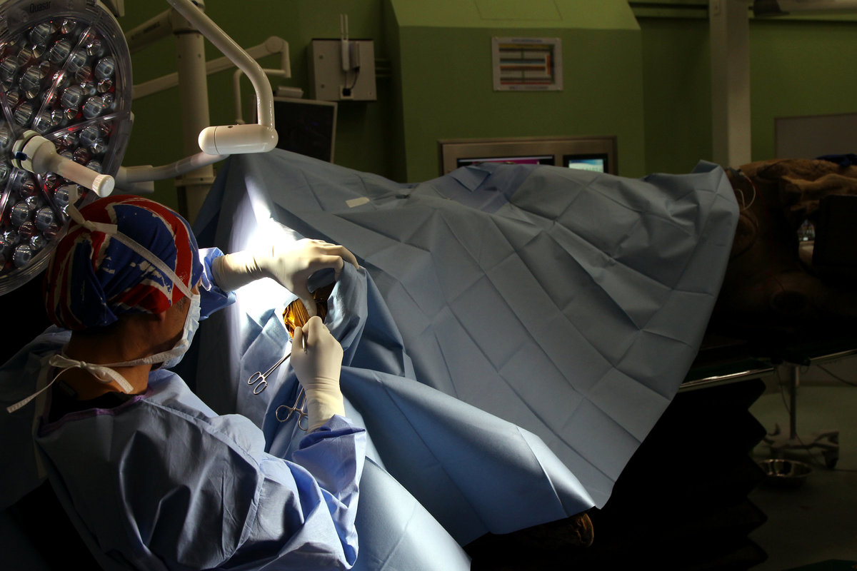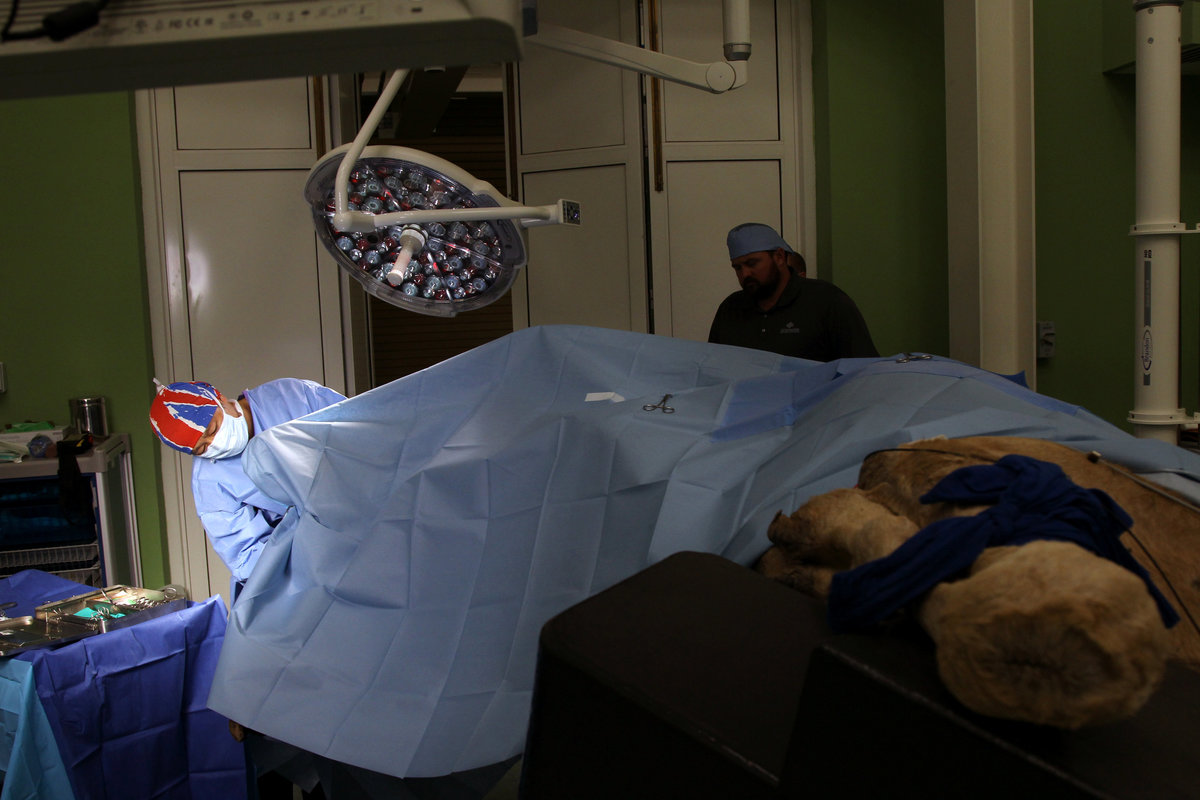 Dr Cedric Chan conducts foot surgery on a camel at the Dubai Camel Hospital in Dubai, UAE, December 11, 2017. Picture taken December 11,2017. REUTERS/Satish Kumar