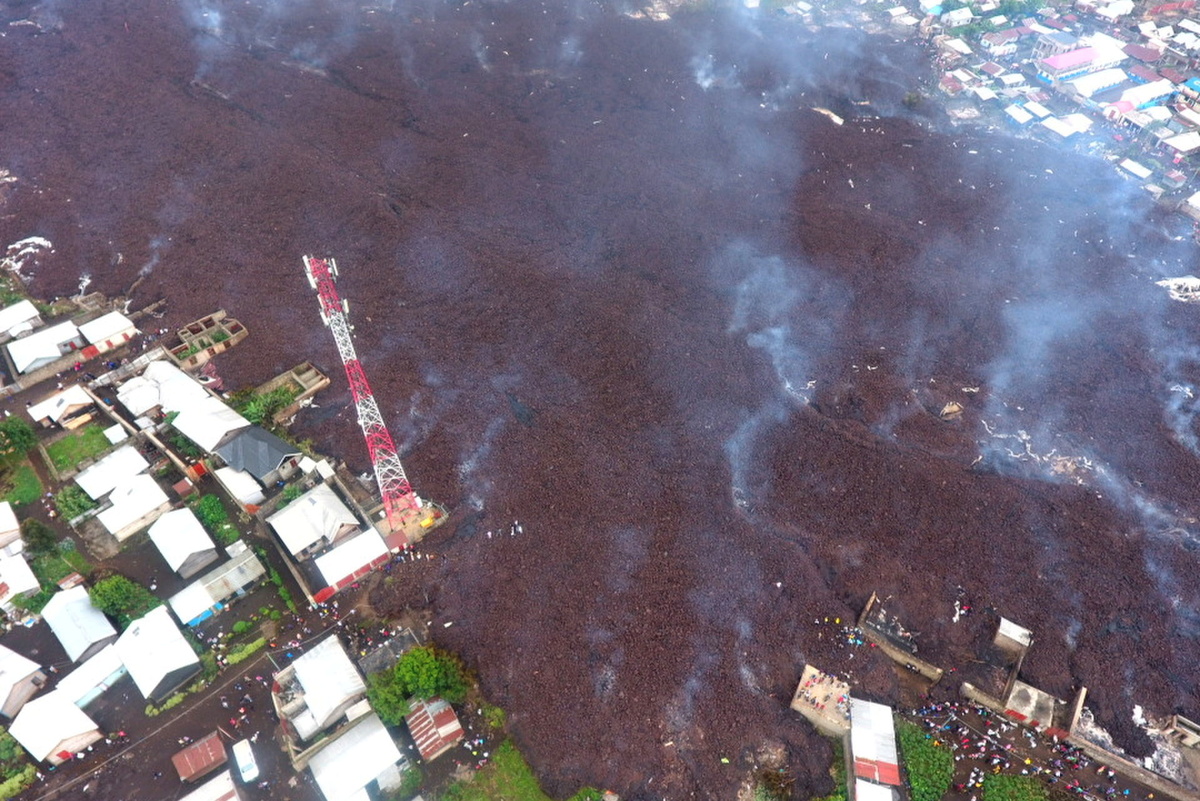 Mount Nyiragongo, one of the world's most active and dangerous volcanoes, erupted on Saturday evening, sending a smouldering wall of lava half a mile wide downhill towards the city of 2 million people.
