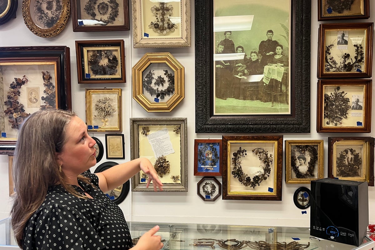 Century-old wreaths made from human hair fill the walls of Leila’s Hair Museum, and glass cases overflow with necklaces and watch bands woven from the locks of the dead. There also are tresses purported to come from past presidents, Hollywood legend Marilyn Monroe and even Jesus.