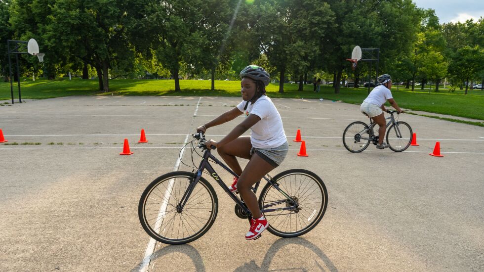 Trevion was one of 25 kids at Humboldt Park on a recent Tuesday training to race in the annual Life Time Kids Triathlon on Saturday. The free program comes from Breakthrough Urban Ministries, an East Garfield Park community organization, and Live Grit Soars, a West Side nonprofit that teaches the sport of triathlon to young people.