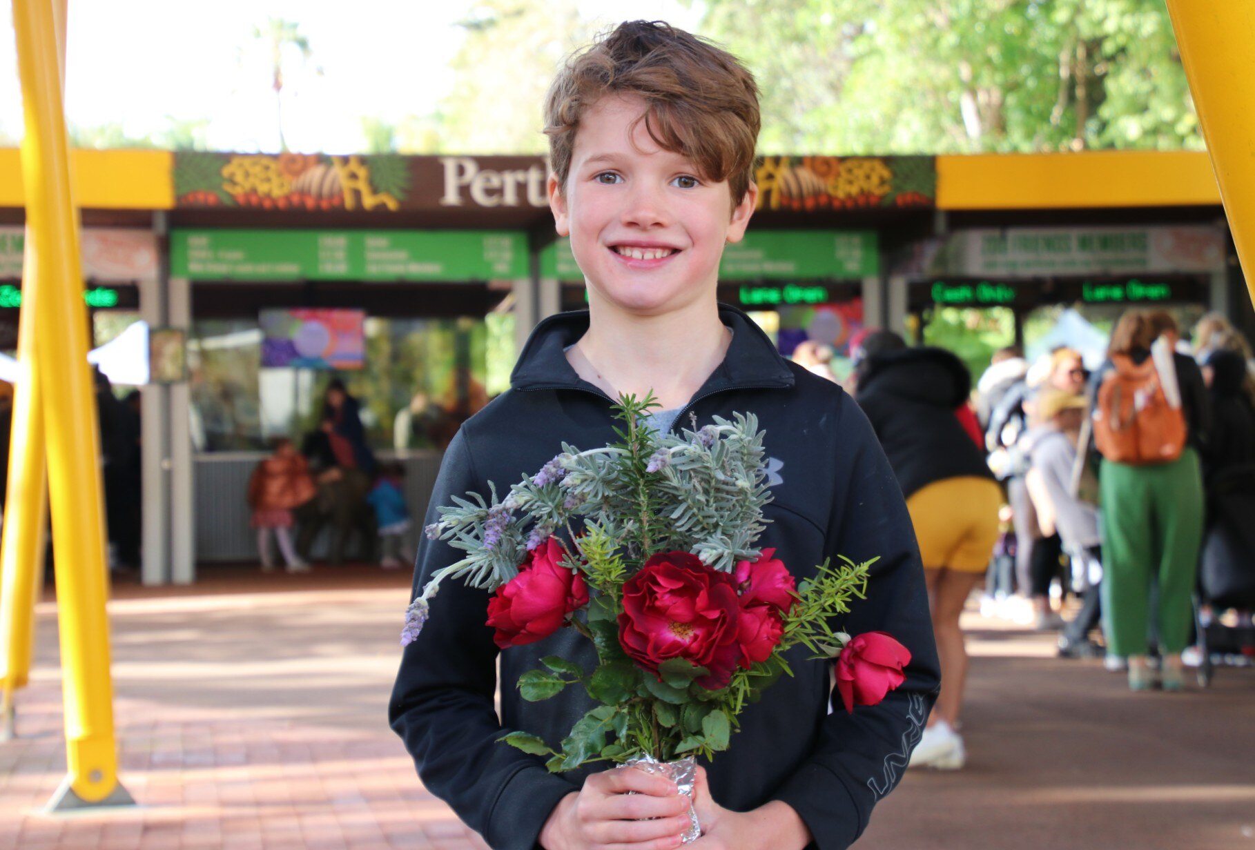 This morning Caspar Matson, 7, brought flowers hand-picked from his garden to the zoo for Tricia, accompanied by his dad and siblings.