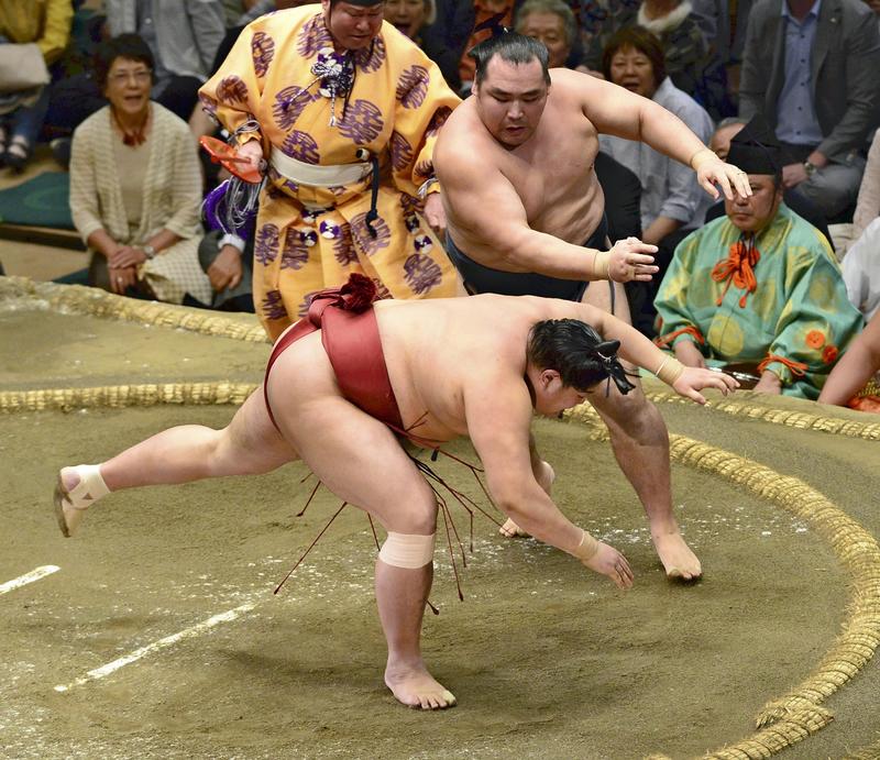 Rank-and-file upstart Asanoyama also put in a strong performance, forcing out No. 7 maegashira Shodai, who suffered his fourth defeat.