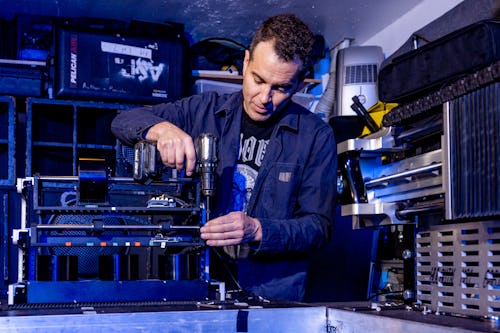 “Having a job as an engineer, I am in a position to interact with this type of equipment all day,” he says. “The machine shops that I deal with, I’m able to make that stuff at the same time I do my job. I’m asking the machinist, ‘Hey, how are parts for our lab?... And also, how are the parts for my gear going?’” (Shone’s bosses are well aware of his musical career and provide him with a flexible schedule to go out on the road.)
