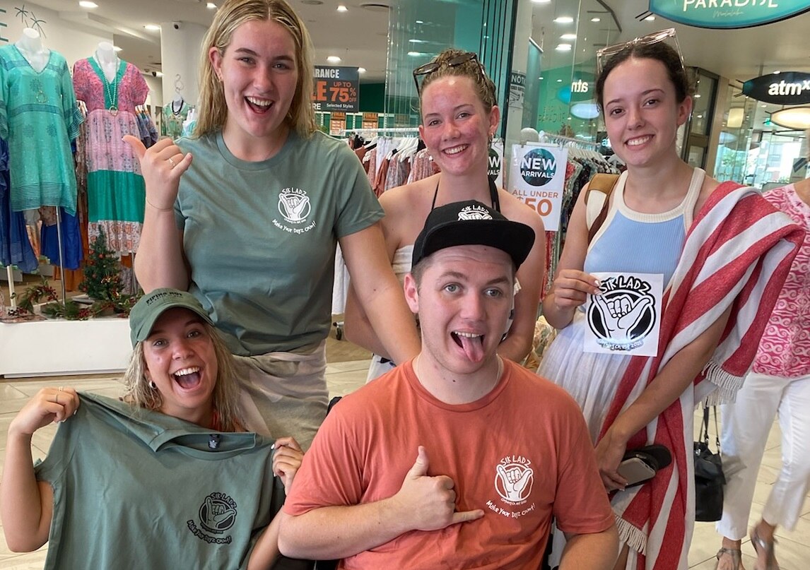 For the past week, he's been mixing it up with his schoolie friends in Bundaberg, Cooroy and Mooloolaba, while taking advantage of the opportunity to hand out his merchandise to other teenagers.