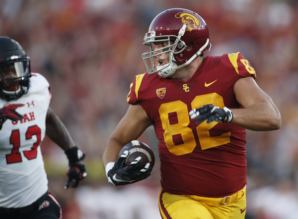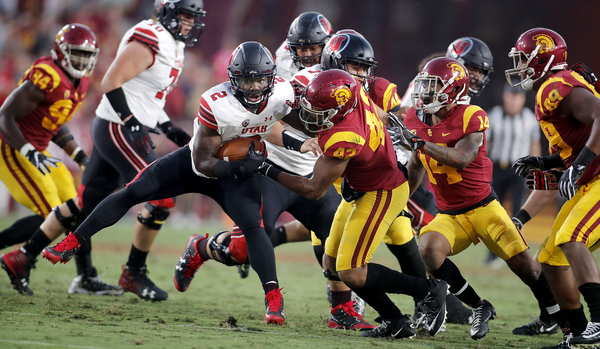 On the first, Helton gambled facing a fourth and nine from Utah's 27-yard line. He kept the offense on the field. Under pressure, Darnold lasered a pass to Tyler Vaughns. The pass was behind Vaughns, who caught it with one hand and muscled his way for an extra yard for the first down. Three plays later, Darnold eluded the rush, scrambled and fired into a tight window to tight end Tyler Petite for a touchdown. It was a 98-yard drive.