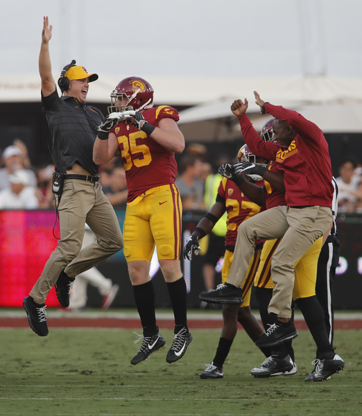 The two-touchdown deficit was USC's largest since the Rose Bowl. Many of the 72,382 at the Coliseum had booed the team off the field at halftime. They stood and cheered after the game.