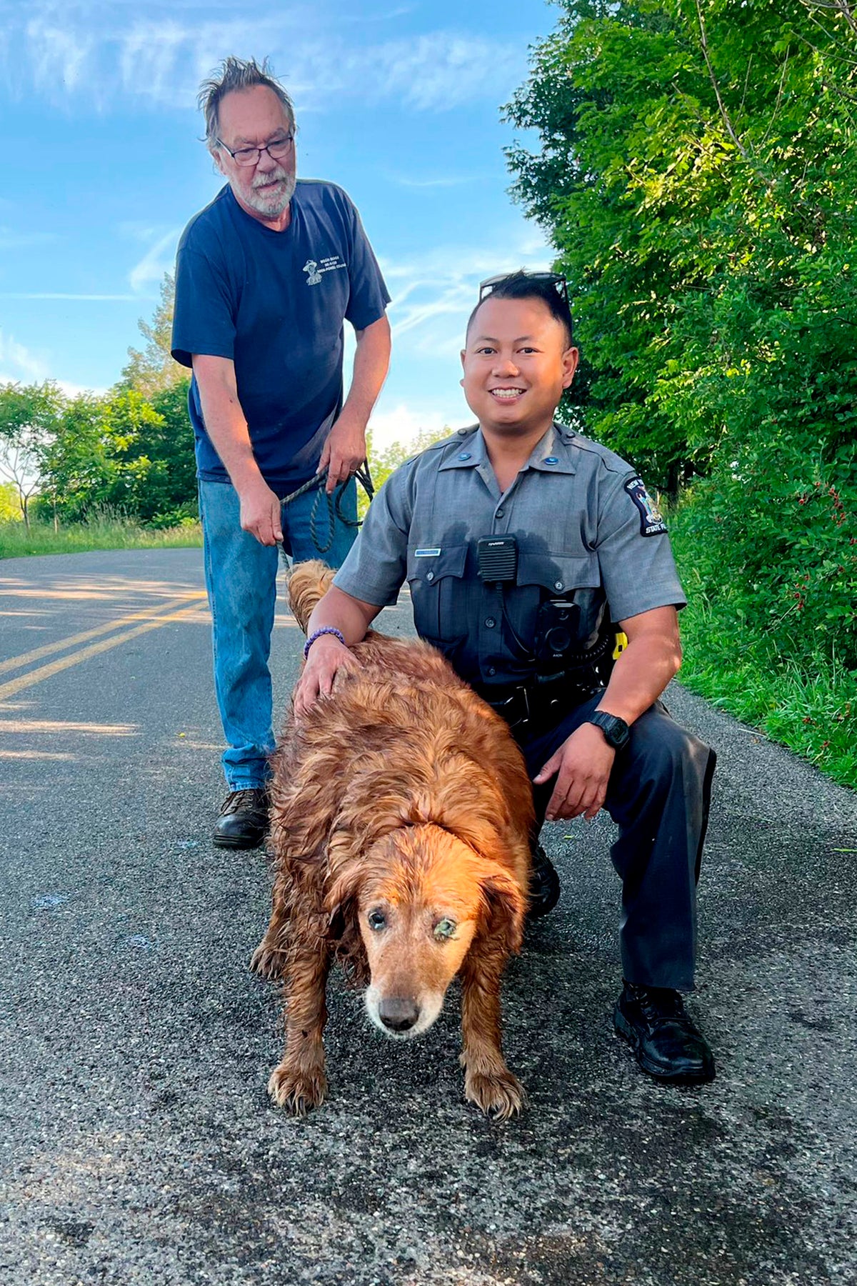 The trooper and retriever both emerged soaking wet, but safe.