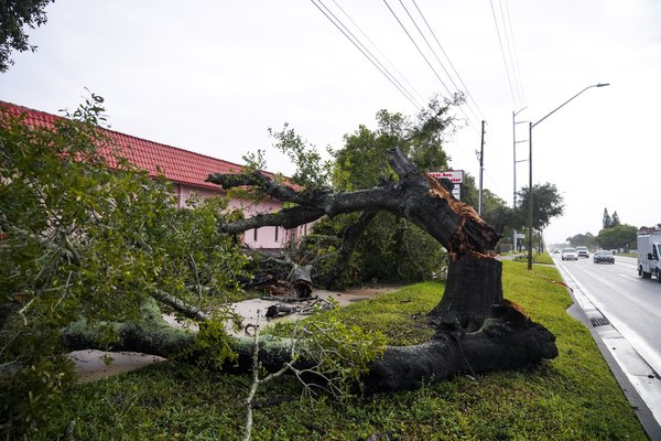 Pedestrians walk along the shore of the bay past debris tossed by storm surge Thursday, Nov. 12, 2020 in Safety Harbor. Tropical Storm Eta passed just off the coast of Pinellas County with torrential rain and storm surge. (Chris Urso/Tampa Bay Times/TNS)Debris is strewn across a pedestrian bridge along the shore of the bay Thursday, Nov. 12, 2020 in Safety Harbor. Tropical Storm Eta passed just off the coast of Pinellas County with torrential rain and storm surge. (Chris Urso/Tampa Bay Times/TNS)Flooding is seen at Tampa General Hospital as Tropical Storm Eta sends torrential downpours, storm surge flooding and wind across the Tampa Bay Area on November 12, 2020. (Luis Santana/Tampa Bay Times/TNS)Leland Holland, of Oldsmar, inspects the flooded living room of his neighbor, Troy Shiltz, which was flooded overnight at 318 Shore Drive E. on Thursday, Nov. 12, 2020, in the aftermath of Tropical Storm Eta where residents of Tampa Bay's counties are mostly breathing a sigh of relief as they assess the damage from high winds and flooding. (Douglas R. Clifford/Tampa Bay Times/TNS)Washed up sailboats on the beach the morning after Tropical Storm Eta battered Tampa Bay, leaving damage from flooding and wind in communities throughout, on Thursday, Nov. 12, 2020 in Gulfport. (Martha Asencio Rhine/Tampa Bay Times/TNS)A tattered flag above Pia's Trattoria the morning after Tropical Storm Eta battered Tampa Bay, leaving damage from flooding and wind in communities throughout, on Thursday, Nov. 12, 2020 in Gulfport. (Martha Asenico Rhine/Tampa Bay Times/TNS)Pedestrians walk past a damaged pier Thursday, Nov. 12, 2020 in Safety Harbor. Tropical Storm Eta passed just off the coast of Pinellas County with torrential rain and storm surge. (Chris Urso/Tampa Bay Times/TNS)Map of Tropical Storm Eta.Garry Sears, 75, starts the process of cleaning up his garage which was tossed by more than a foot of storm surge which entered the garage overnight at his home at 324 Shore Drive E. on Thursday, Nov. 12, 2020, in the aftermath of Tropical Storm Eta where residents of Tampa Bay's counties are mostly breathing a sigh of relief as they assess the damage from high winds and flooding. (Douglas R. Clifford/Tampa Bay Times/TNS)Otto Lohmann, 87, inspects the remnants of storm surge which entered his utility room and garage overnight at his home at in Oldsmar on Thursday, Nov. 12, 2020, in the aftermath of Tropical Storm Eta where residents of Tampa Bay's counties are mostly breathing a sigh of relief as they assess the damage from high winds and flooding. (Douglas R. Clifford/Tampa Bay Times/TNS)A damaged street sign at the corner of W Wallcraff Ave and Bayshore Blvd in the aftermath of Tropical Storm Eta at 5001 4th St N, on Thursday, Nov. 12, 2020 in Tampa. Bayshore Blvd was one of the many streets that had high water and flooding. (Dirk Shadd/Tampa Bay Times/TNS)People drive through flooded areas downtown, the morning after Tropical Storm Eta battered Tampa Bay, leaving damage from flooding and wind in communities throughout, on Thursday, Nov. 12, 2020 in Gulfport. (Martha Asenico Rhine/Tampa Bay Times/TNS)A planter box is dislodged from its base as Gerard Corbino, right, and Dereck Tyler, 33, left, both of Safety Harbor talk about the storm surge near the marina Thursday, Nov. 12, 2020 in Safety Harbor. Tropical Storm Eta passed just off the coast of Pinellas County with torrential rain and storm surge.(Chris Urso/Tampa Bay Times/TNS)An 8-inch water line remains on the door of Otto Lohmann's garage, the mark of storm surge which entered his utility room and garage overnight at his home at 400 Shore Drive E. on Thursday, Nov. 12, 2020, in the aftermath of Tropical Storm Eta where residents of Tampa Bay's counties are mostly breathing a sigh of relief as they assess the damage from high winds and flooding. (Douglas R. Clifford/Tampa Bay Times/TNS)Otto Lohmann, 87, inspects the remnants of storm surge which entered his utility room and garage overnight at his home at 400 Shore Drive E. on Thursday, Nov. 12, 2020, in the aftermath of Tropical Storm Eta where residents of Tampa Bay's counties are mostly breathing a sigh of relief as they assess the damage from high winds and flooding. (Douglas R. Clifford/Tampa Bay Times/TNS)Water splashes against the seawall along Pass A Grille Way in St. Pete Beach on Wednesday as squalls from Tropical Storm Eta move through Pinellas County. (Scott Keeler/Tampa Bay TimesWave action from Tropical Storm Eta caused beach erosion on Sunset Beach, Treasure Island on Wednesday, November 11, 2020. Visitors watch the Gulf on Thursday, November 12, 2020. (Scott Keeler/Tampa Bay Times/TNS)A downed tree along 38th Avenue which affected the power lines, the morning after Tropical Storm Eta battered Tampa Bay, leaving damage from flooding and wind in communities throughout, on Thursday, Nov. 12, 2020 in St. Petersburg. (Martha Asenico Rhine/Tampa Bay Times/TNS)