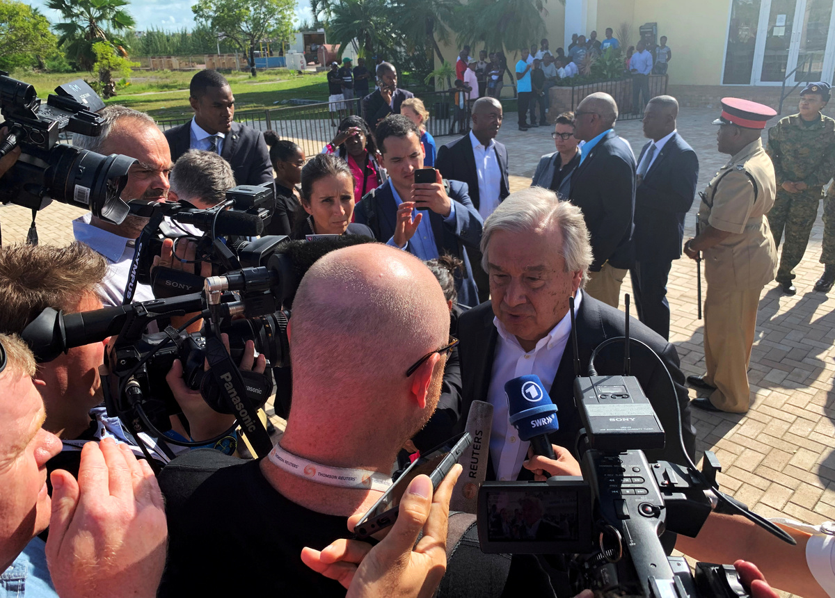 United Nations Secretary-General Antonio Guterres arrived in Nassau on Friday in a show of international support. He looked visibly shaken on Saturday after taking an aerial tour of Abaco, which bore the brunt of Dorian's impact.
