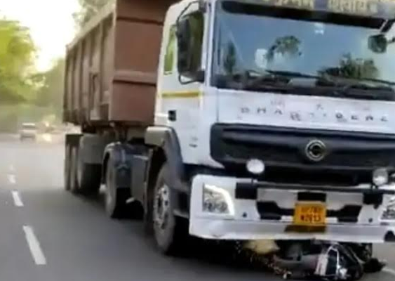 Eyewitnesses said that after the accident, people who were on motorcycles tried hard to stop the truck but the driver kept dragging the two-wheeler in an attempt to escape.