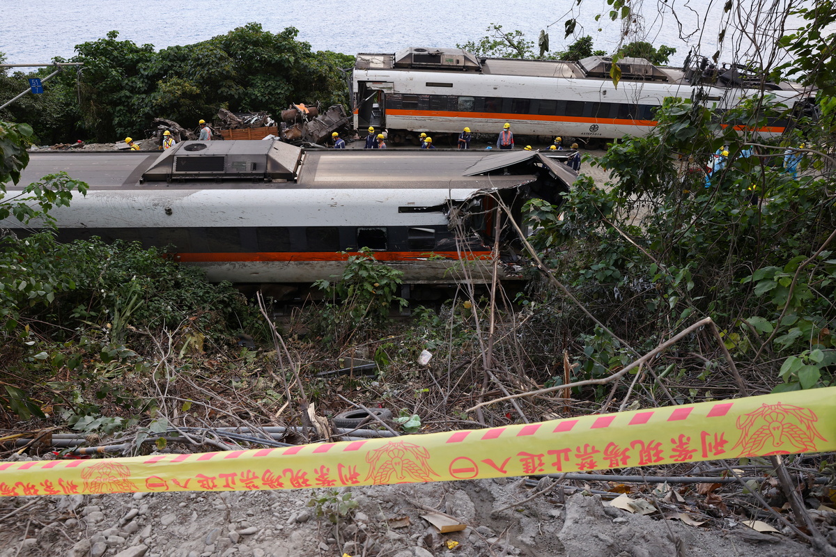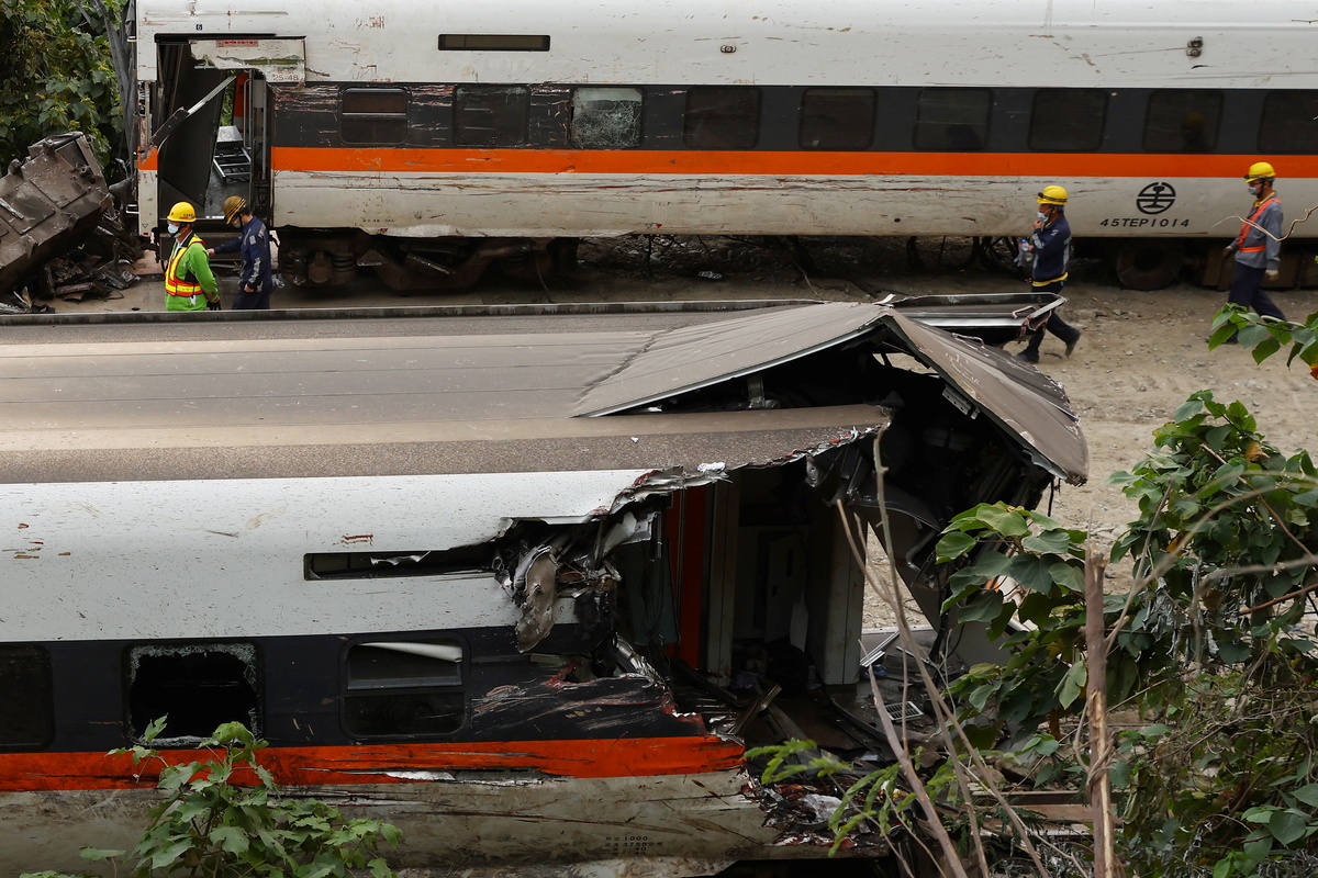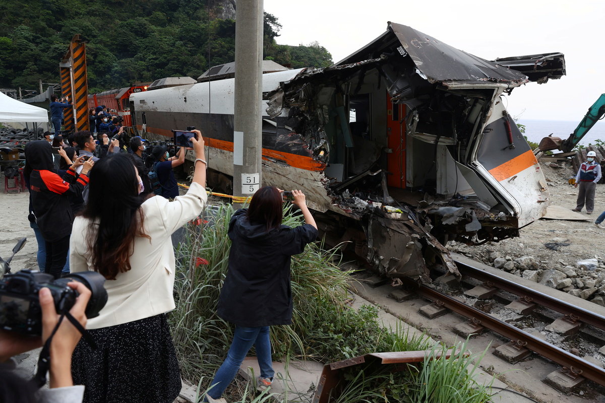 The packed train carrying almost 500 passengers and crew slammed into a truck near the eastern city of Hualien on Friday, causing it to derail and the front and middle parts to crumple. It was the island's worst rail accident in seven decades.