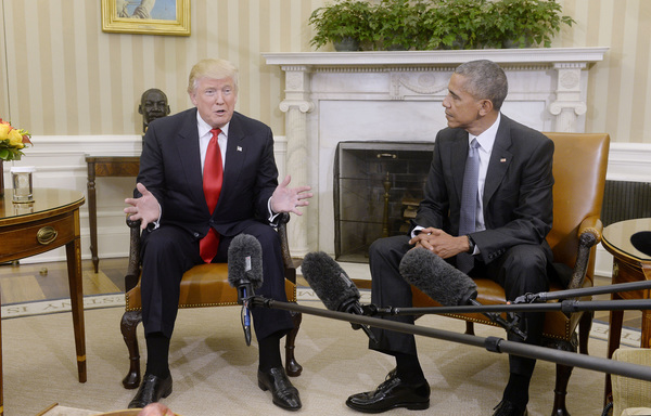 WASHINGTON _ President Barack Obama met for more than 90 minutes with President-elect Donald Trump in the Oval Office on Thursday, an unexpectedly lengthy encounter that ended with both men offering uncharacteristic praise for each other.