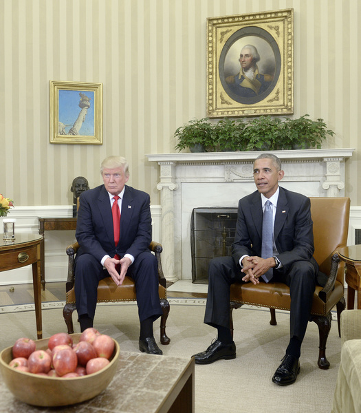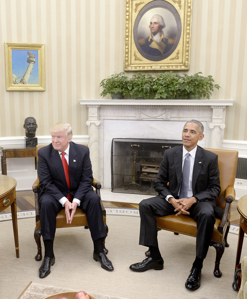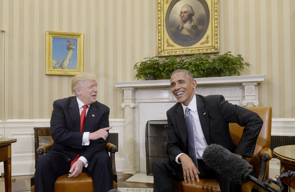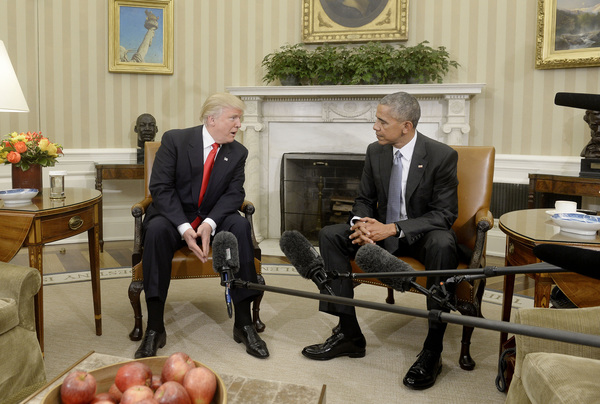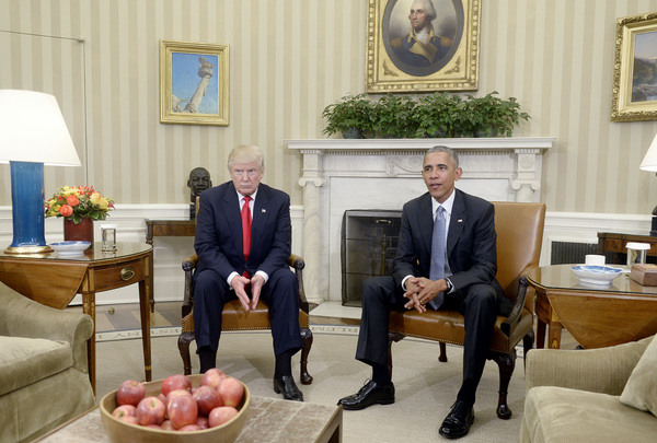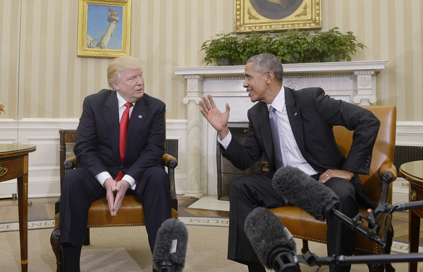 Though both men had spent the day and a half since Trump's election emphasizing a peaceful transition of power, the atmosphere surrounding it was more fraught. Trump campaigned on a repudiation of the Obama years while Obama spent months calling the GOP nominee unfit for the presidency.