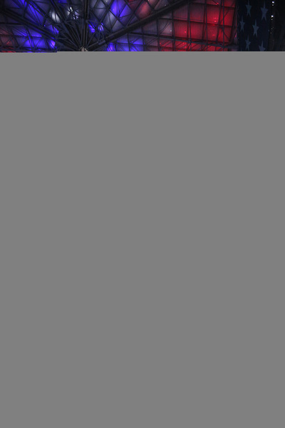 Footage showed Trump mouthing the wrong words as a choir of four harmonized, "at the twilight's last gleaming."