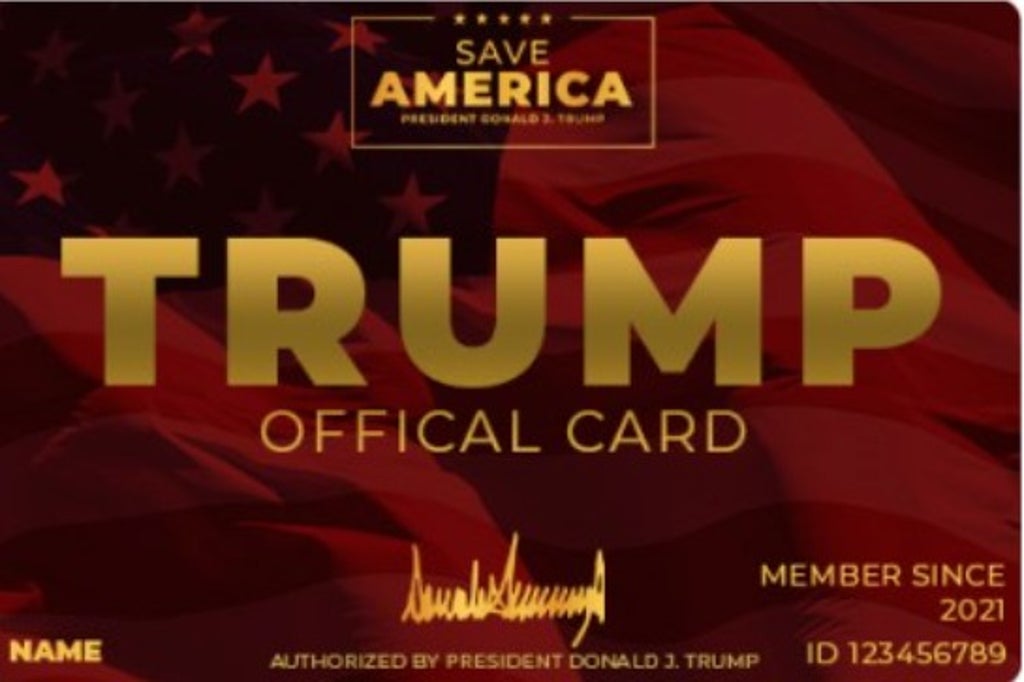 The one-term president’s Save America political action committee has emailed his supporters giving them a say in the design of the red and gold card, which has been ridiculed on social media.