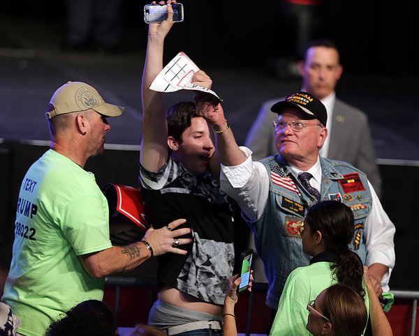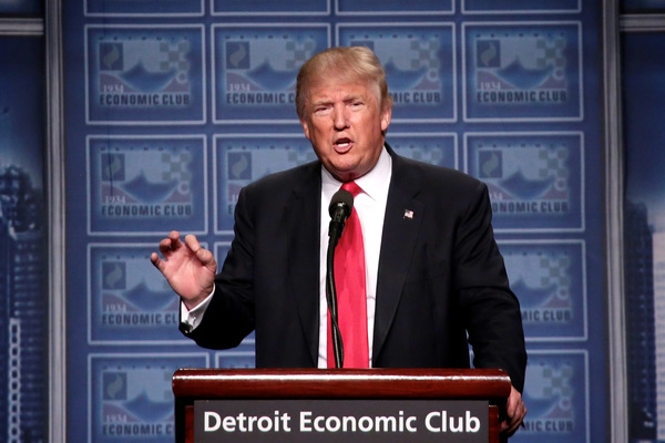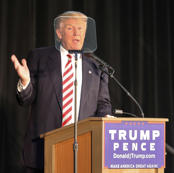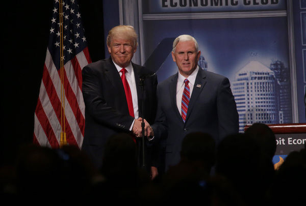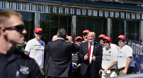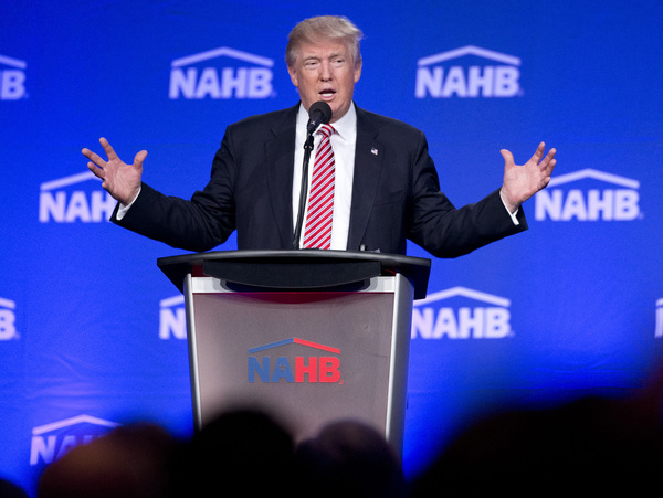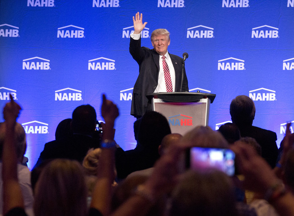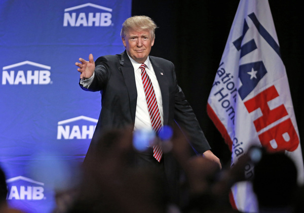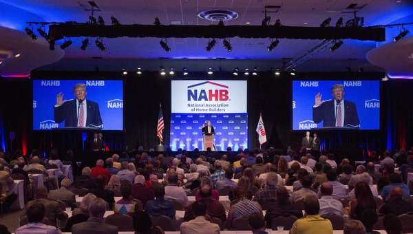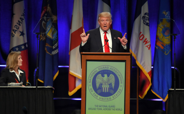 Association members greeted Trump's speech _ which briefly included plans for "major rebuilding of the entire military and the elimination of the defense sequester" as well as "the best, modern state-of-the-art equipment in the world" _ with a standing ovation.