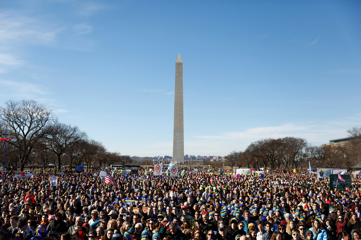 "Because of you, tens of thousands of Americans have been born and reached their full, God-given potential," Trump, a Christian, told the marchers, who included many groups of students from Roman Catholic schools.