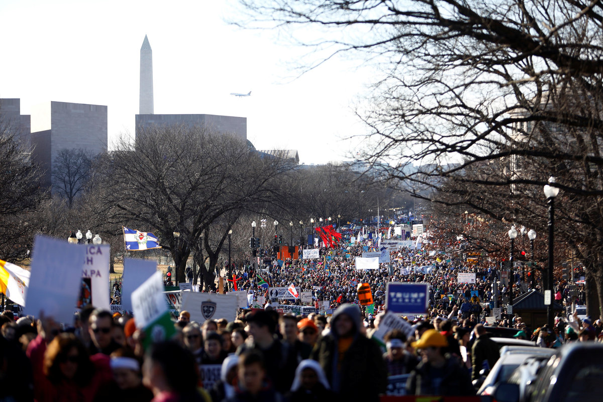 Many marchers, carrying signs with slogans such as "Pray to end abortion," said they were excited to hear from a president they see as an ally, but hesitated to point to any specific advancements in their agenda from Trump's first year in office.