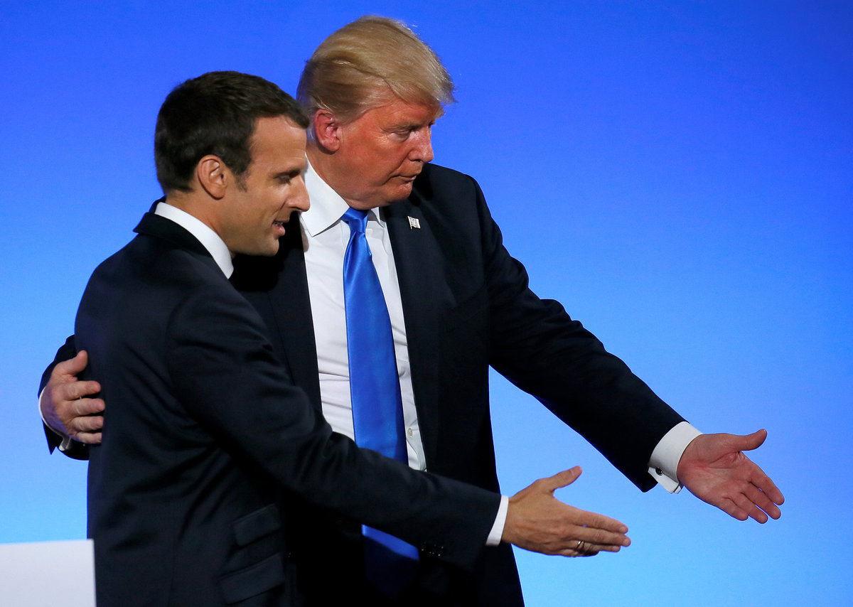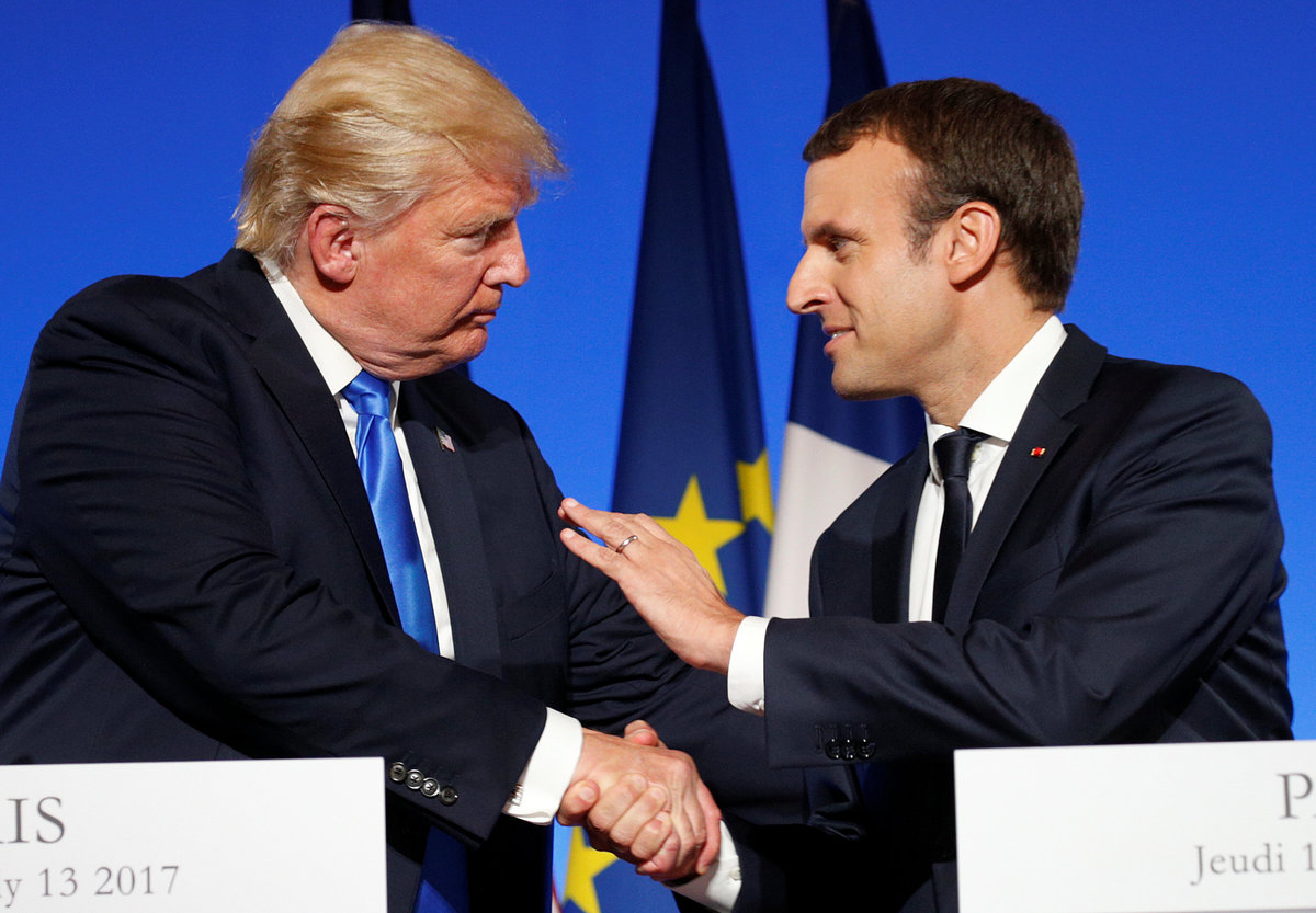Macron welcomed Trump with a warm handshake and smiles, a contrast to the clenched-jaw greeting they shared at their first encounter in May.