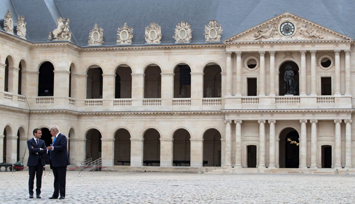 "Emmanuel, nice to see you. This is so beautiful," the U.S. president told Macron as they met at the Hotel des Invalides where Napoleon Bonaparte and other French war heroes are buried.