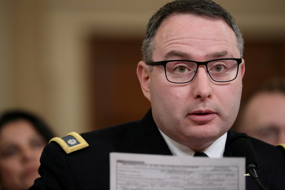 Yevgeny Vindman, also an Army lieutenant colonel, worked for the NSC as a lawyer. An Army spokesperson said both brothers had been reassigned to the Army, but declined to provide further information "out of respect for their privacy."