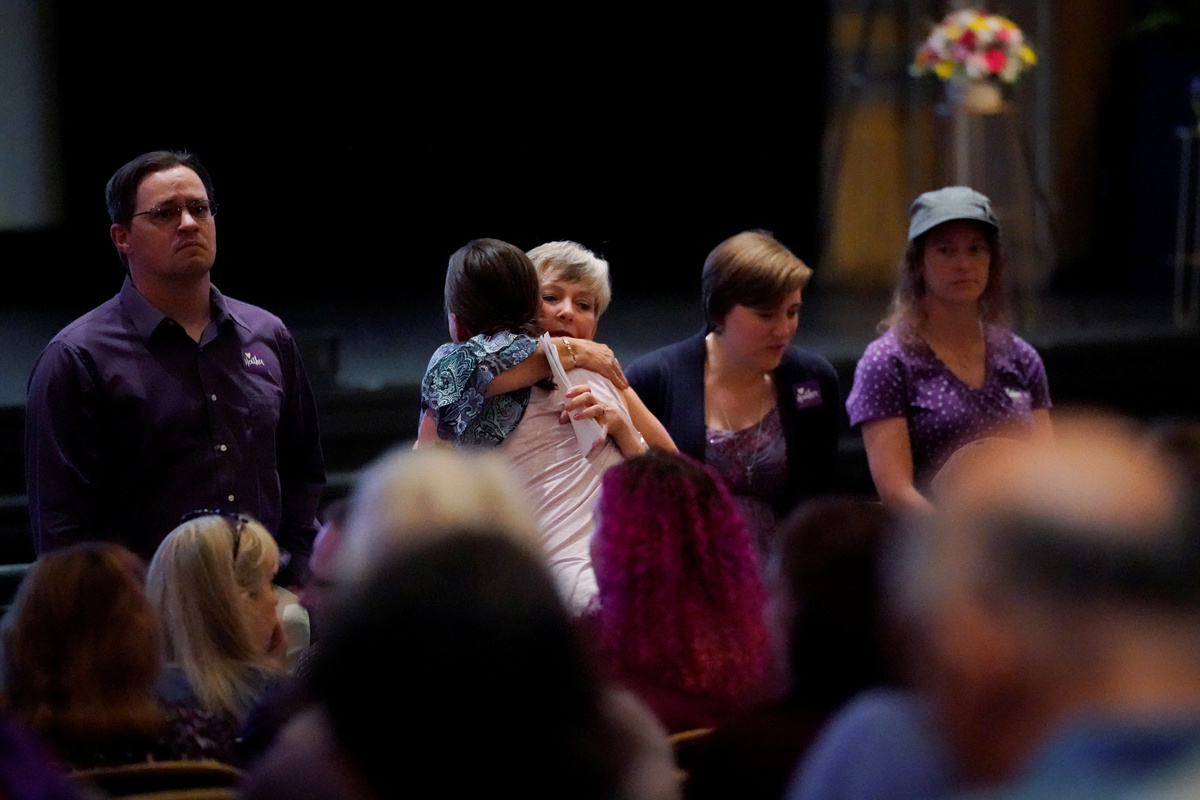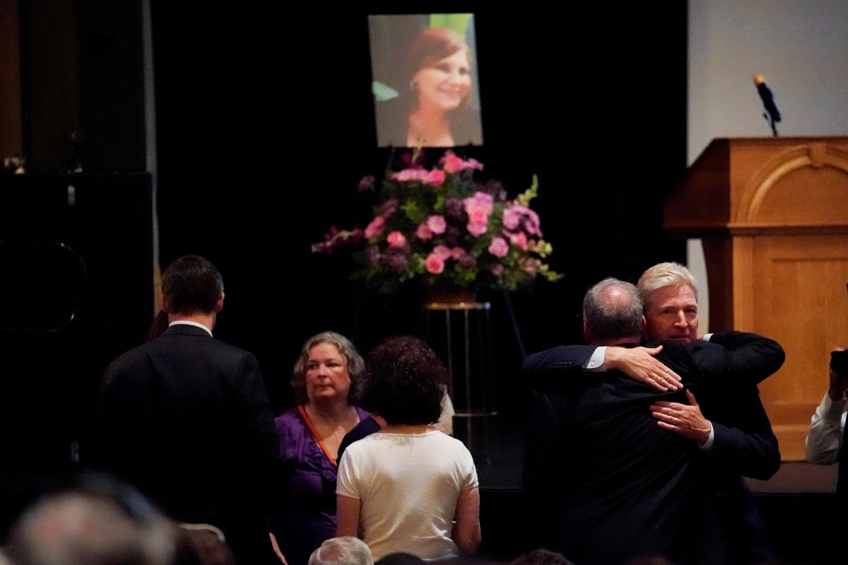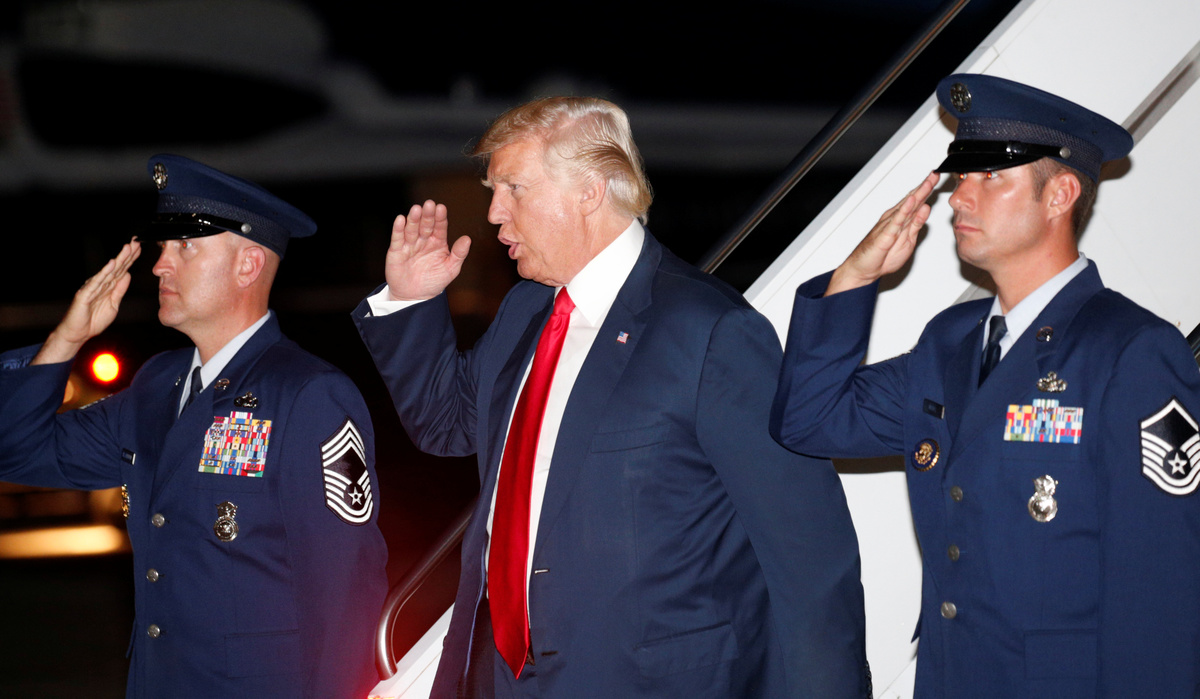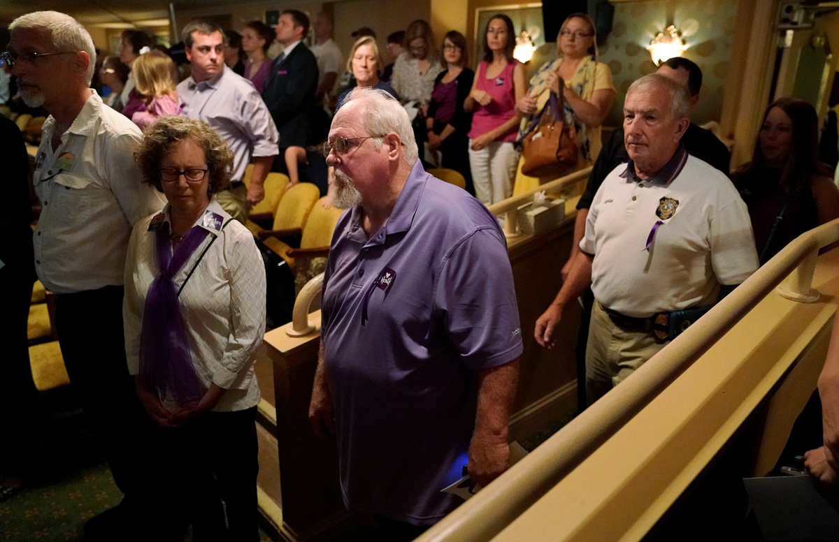 People in an over flow area watch the memorial service for Heather Heyer, who was killed when a suspected white nationalist crashed his car into anti-racist demonstrators, in Charlottesville, Virginia, U.S., August 16, 2017. REUTERS/Joshua RobertsMourners gather and hug inside the Paramount Theater for a memorial service for car attack victim Heather Heyer (seen in photograph at rear) who was kileld during the "Unite the Right" rally and protests in Charlottesville, Virginia, U.S., August 16. 2017. REUTERS/Jonathan ErnstCar attack victim Heather Heyer's father Mark Heyer arrives for her memorial service inside the Paramount Theater in Charlottesville, Virginia, U.S., August 16. 2017. REUTERS/Jonathan ErnstMourners gather inside the Paramount Theater for a memorial service for car attack victim Heather Heyer in Charlottesville, Virginia, U.S., August 16. 2017. REUTERS/Jonathan ErnstA member of the clergy holds a picture of Heather Heyer as they stand outside of her memorial service. REUTERS/Joshua RobertsA cameraman stands among mourners and police outside the Paramount Theater prior to a memorial service for car attack victim Heather Heyer in Charlottesville, Virginia, U.S., August 16. 2017. REUTERS/Jonathan ErnstPeople carrying bats and shields to provide security in the event of far-right protesters stand outside the memorial service for Heather Heyer, who was killed at in a far-right rally in Charlottesville, Virginia, U.S., August 16, 2017. REUTERS/Joshua RobertsMourners gather inside the Paramount Theater for a memorial service for car attack victim Heather Heyer in Charlottesville, Virginia, U.S., August 16. 2017. REUTERS/Jonathan ErnstPeople line up to attend the memorial service for Heather Heyer, who was killed at in a far-right rally in Charlottesville, Virginia, U.S., August 16, 2017. REUTERS/Joshua RobertsA sign on the statue of Robert E. Lee calls for the park to be renamed for Heather Heyer, who was killed at in a far-right rally, in Charlottesville, Virginia, U.S., August 16, 2017. REUTERS/Joshua RobertsPeople gather for a vigil in response to the death of a counter-demonstrator at the "Unite the Right" rally in Charlottesville, outside the White House in Washington. REUTERS/Jonathan ErnstA man wears a purple ribbon to remember Heather Heyer, who was killed at in a far-right rally, as he arrives for her memorial service in Charlottesville, Virginia, U.S., August 16, 2017. REUTERS/Joshua RobertsU.S. President Donald Trump salutes as he steps from Air Force One at Kennedy Airport in New York, U.S., August 14, 2017. REUTERS/Kevin Lamarque