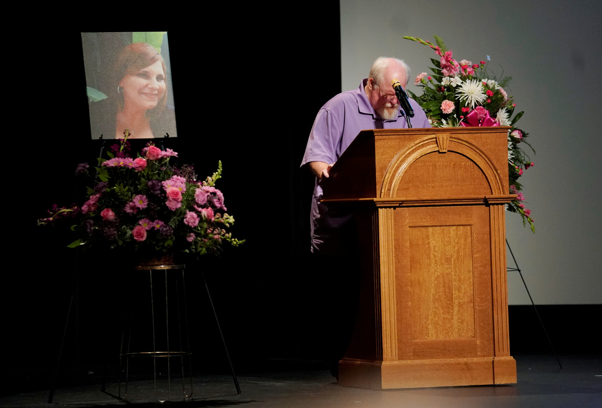 Car attack victim Heather Heyer's father Mark Heyer speaks at her memorial service inside the Paramount Theater in Charlottesville, Virginia, U.S., August 16. 2017. REUTERS/Jonathan Ernst