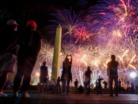 More than 7,800 explosives were set off following a closing address by the former president at the White Hose. It concluded with the words “TRUMP 2020” written in fireworks above the Washington Monument,