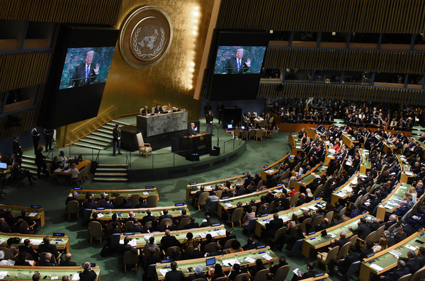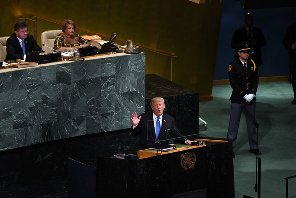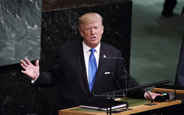 UNITED NATIONS _ President Donald Trump delivered a forceful inaugural speech to a packed U.N. General Assembly on Tuesday, a sprawling 42-minute address that ranged from warlike to flowery and that challenged some long-cherished tenets of U.S. foreign policy.