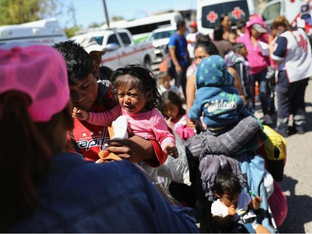 “Mexico, whose laws on immigration are very tough, must stop people from going through Mexico and into the US. We may make this a condition of the new Nafta Agreement. Our Country cannot accept what is happening!” Mr Trump wrote. “Also, we must get Wall funding fast”.