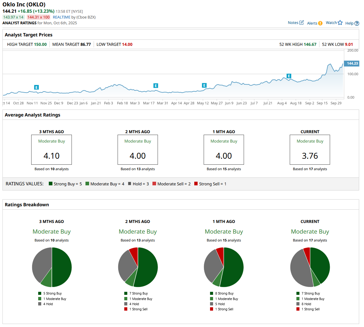 OKLO stock is in an interesting place at the moment. While the stock enjoys a consensus “Moderate Buy” rating from analysts, suggesting positive sentiment, the mean price target of $86.77 suggests a potential downside of 66% from the market rate. With the way OKLO has been going, analysts may need to reevaluate their price targets.