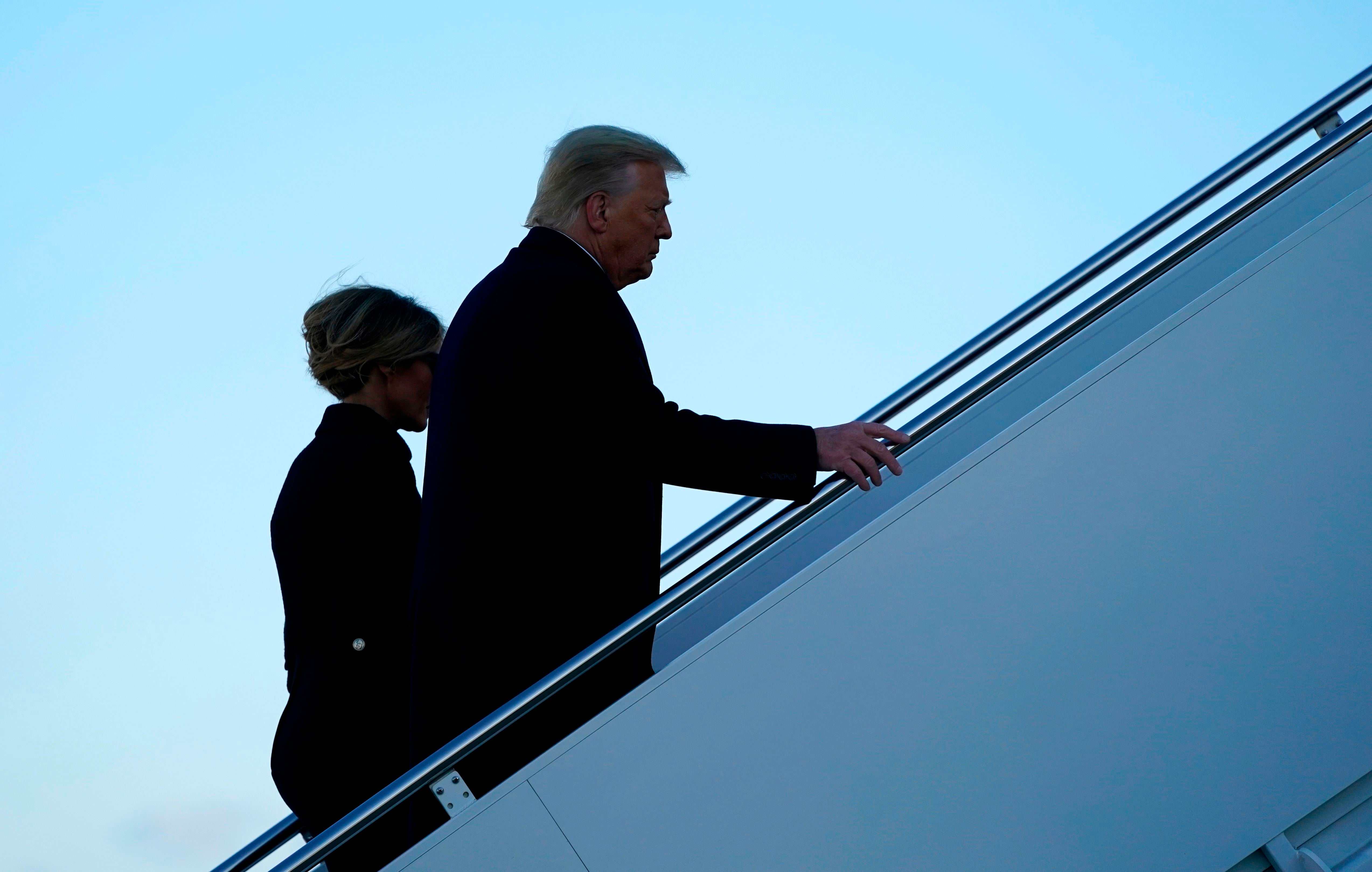The Trumps travelled on Marine One for the short trip to Joint Base Andrews, where the president made remarks to a crowd of supporters before they boarded Air Force One for a final flight to Palm Beach, Florida.