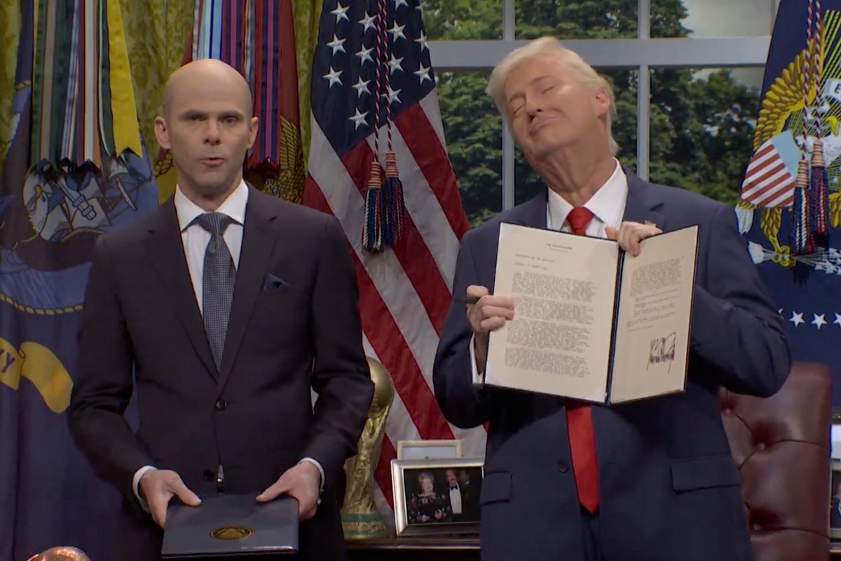 SNL mocks Trump’s use of executive orders: ‘Reduce the number of interracial couples in TV commercials’