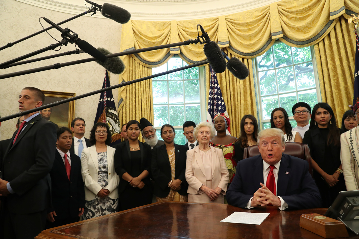 WASHINGTON (Reuters) - U.S. President Donald Trump, who has made religious freedom a centerpiece of his foreign policy, met on Wednesday with victims of religious persecution from countries including China, Turkey, North Korea, Iran and Myanmar.
