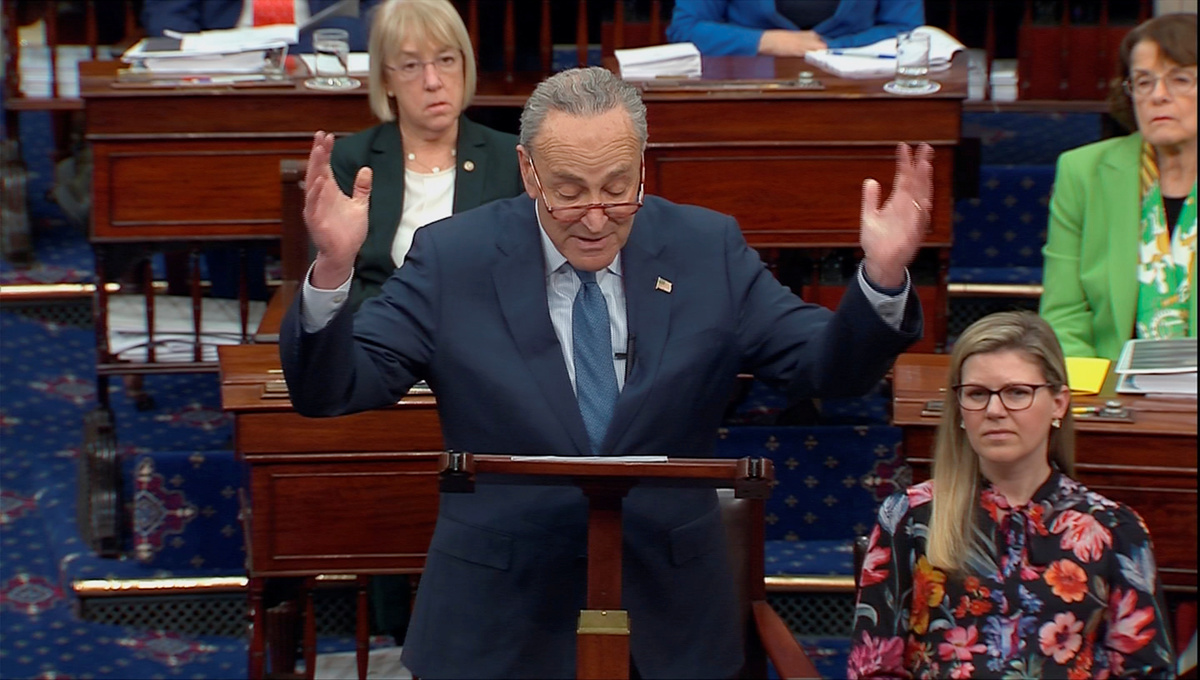 "No doubt, the president will boast he received total exoneration. But we know better. We know this wasn't a trial by any stretch of the definition," said Chuck Schumer, the top Senate Democrat.