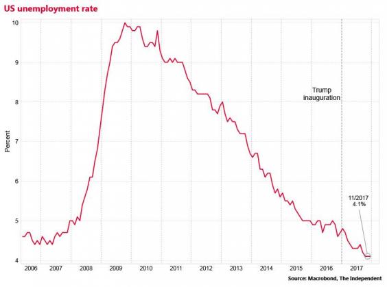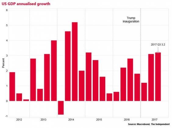 In the first quarter of 2017 the US economy was growing at an annualised rate of 1.2 per cent. That had strengthened by the third quarter to 3.2 per cent.