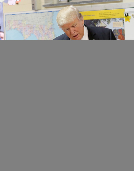 Before a round table session that was closed to reporters, Trump praised St. Andrew Principal Latrina Peters-Gibson and Diocese of Orlando schools superintendent Henry Fortier.