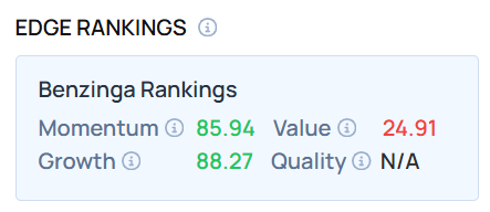The COIN stock rose 1.11% to $318.17 during Monday’s regular trading session. As of this writing, it ranked higher on the Momentum and Value rankings. Compare the stock’s performance with “Mag 7” firms, using the Benzinga Edge Stock Rankings.