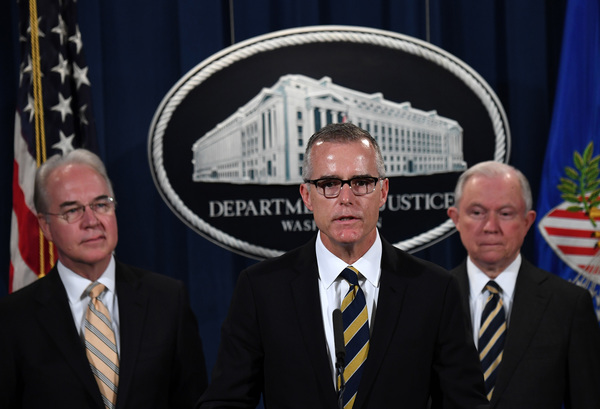 Trump called McCabe, a 31-year veteran of the FBI, a "Comey friend who was in charge of the Clinton investigation." McCabe was James B. Comey's deputy before Trump fired Comey in June. At that point, McCabe took over running the bureau, but he hasn't been running the Russia investigation, which is directed by special counsel Robert S. Mueller III.
