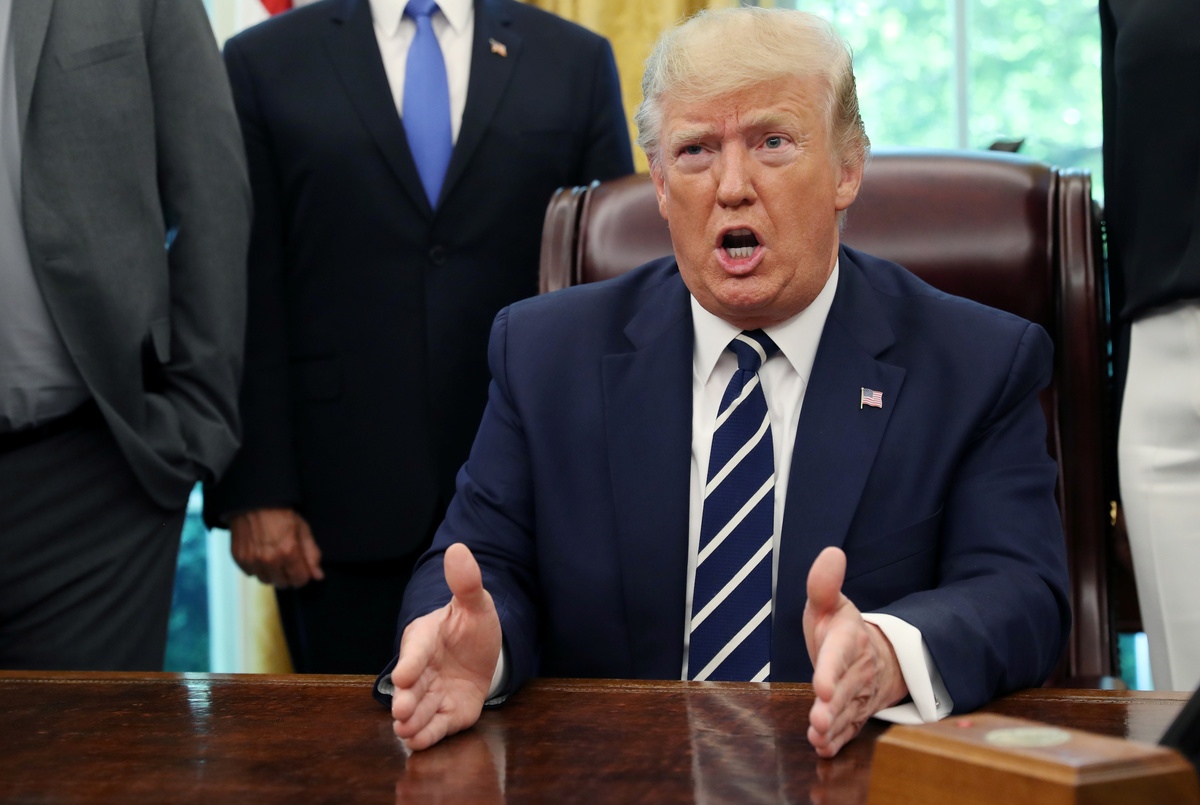 Trump, talking to reporters on the White House South Lawn prior to a weekend visit to his golf club in Bedminster, New Jersey, agreed that the four have a constitutionally protected freedom of speech, but that he has the right to respond.