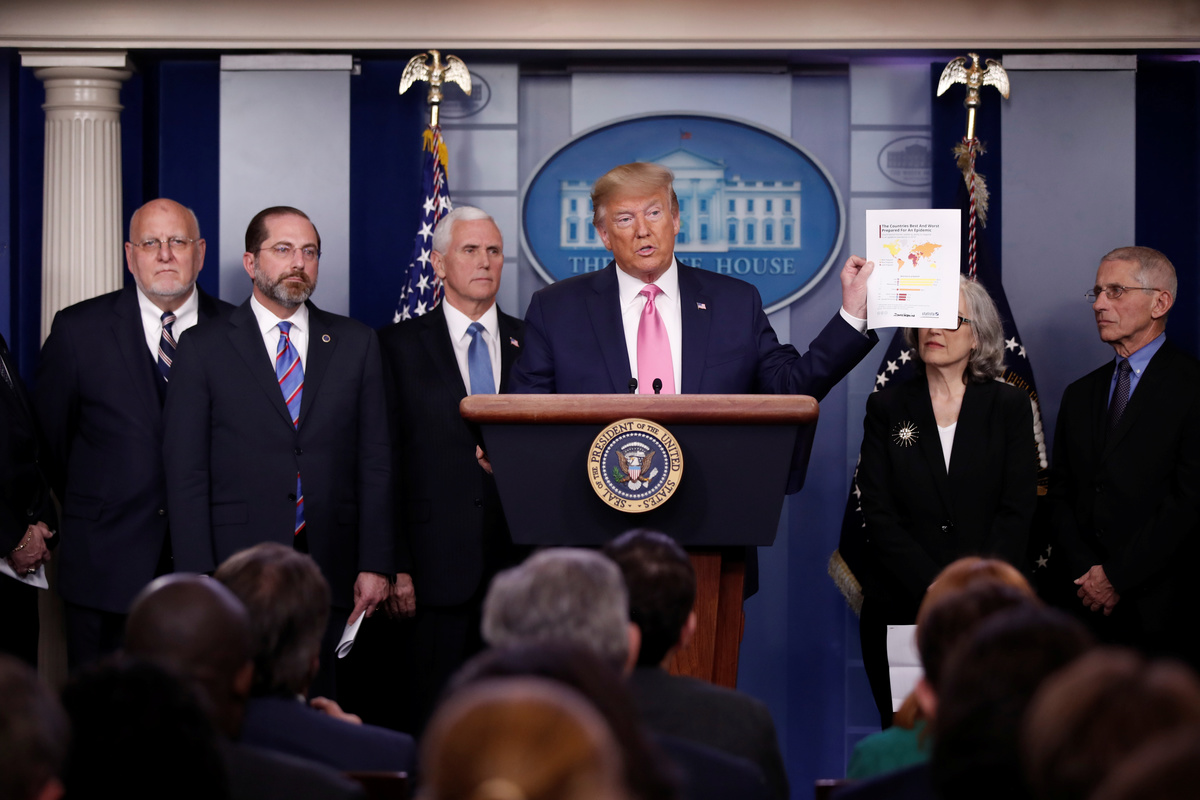 At a White House briefing, Trump defended his administration's handling of the crisis and said health experts were "ready, willing and able" to move quickly if the virus spreads.