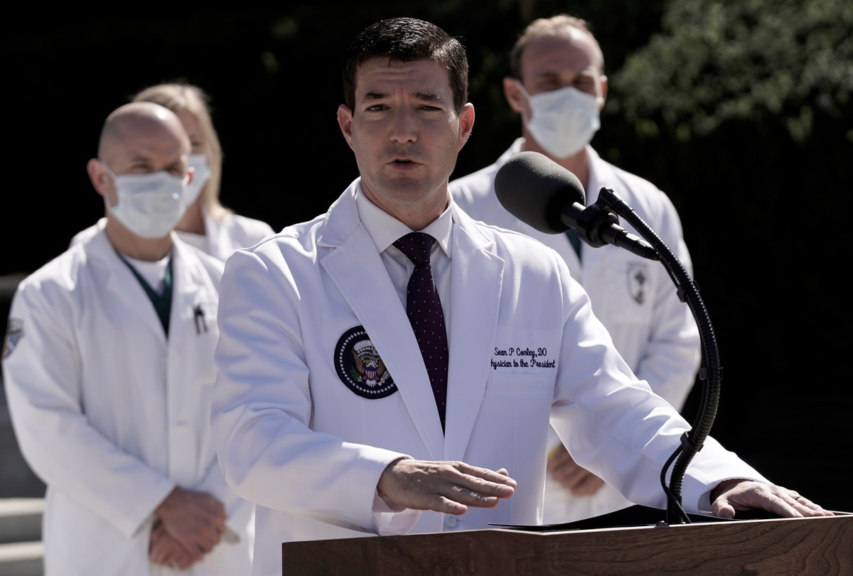 White House doctor Sean P. Conley told reporters outside the hospital on Saturday that Trump had not had trouble breathing, and was not given oxygen at Walter Reed.