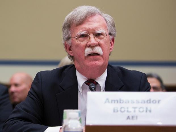 Mr Bolton replaces the more measured General HR McMaster and joins erstwhile CIA Director Mike Pompeo, the president’s nominee for to replace former Secretary of State Rex Tillerson, as part of a new more war-focused Cabinet.