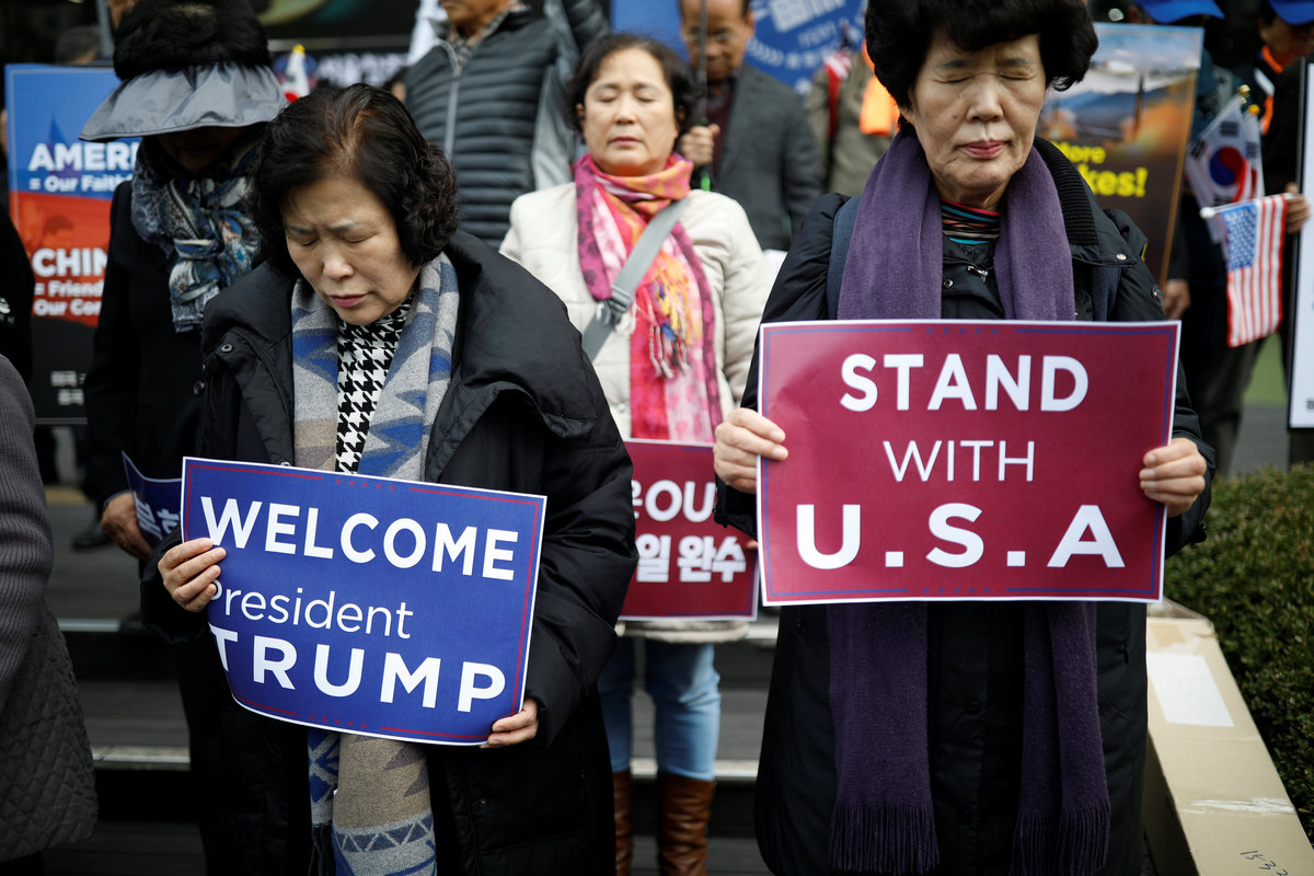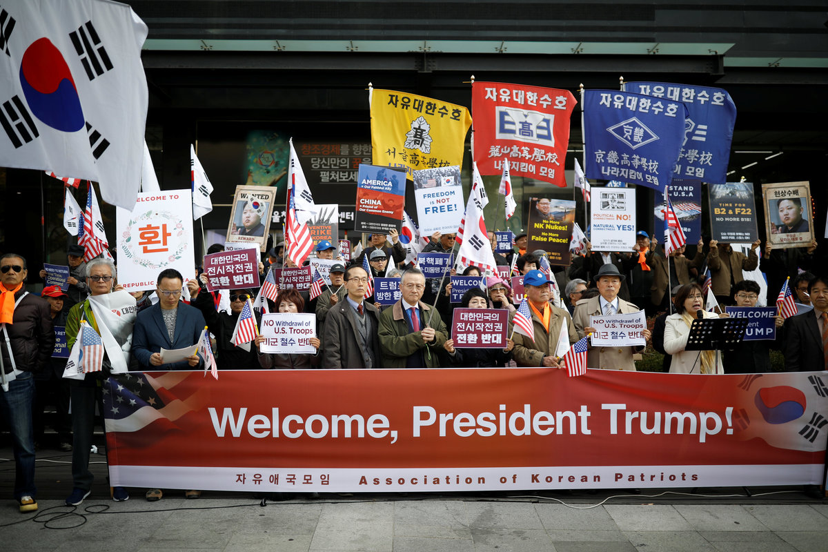 The South Korea leg of Trump’s trip is an effort to present a united front despite differences with Moon over how to confront North Korea, as well as Trump's complaints over the two countries' trade agreement and South Korean defense spending.
